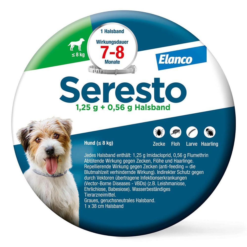 37,50 €/St - Kategorie: Hundehalsbänder - SERESTO - GTIN:4150800279291 - PZN:80027929 - Seresto Halsband für große Hunde 8 kg 2X1 St - rezeptfrei - von Elanco Deutschland GmbH - - 2 St - 74,99 Euro bei DocMorris Apotheke - gefunden von billiger.de Ein praktisches Doppelpack für Katzen auf Amazon, das eine gute Ersparnis im Vergleich zum Einzelkauf bietet. ![]() ![]() Seresto Zeckenhalsband im Sparset fu?r Katzen: 7 bis 8 Monate wirksamer Schutz gegen Zecken und Flöhe, Länge 36 cm, 2 Halsbänder