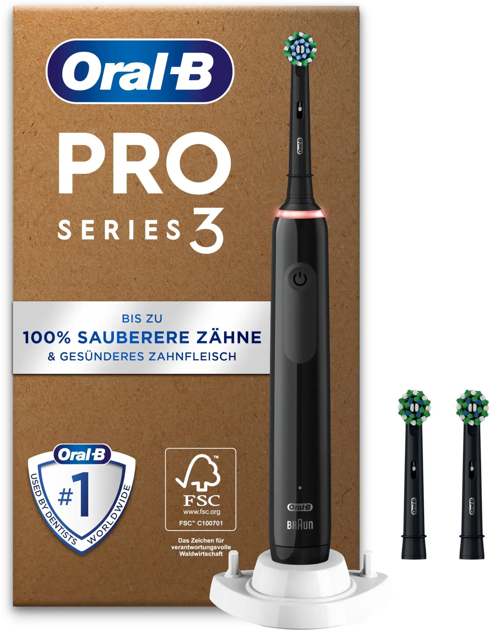 Kategorie: Elektrische Zahnbürsten - Oral-B - GTIN:8006540977804 - Entdecken Sie Die Oral B Serie 3 Plus Edition Eine Leistungsstarke Elektrische Zahnbürste, Die Ihre Tägliche Zahnpflege Auf Ein --es Level Hebt. Mit Modernster Oszillations-Technologie Entfernt Sie Bis Zu 100 % Mehr Plaque Als Eine Herkömmliche Handzahnbürste. Die Serie 3 Kommt Inklusive Drei Hochwertiger Bürstenköpfe Für Eine Langanhaltende Mundhygiene. Das Power Pack Sorgt Für Eine Besonders Gründliche Reinigung Und Sanfte Behandlung Ihres Zahnfleischs. Praktische Timer-Funktion Unterstützt Die Empfohlene Putzdauer. Ideal Für Alle, Die Wert Auf Gesundheit Und Ein Strahlendes Lächeln Legen. Stärken Sie Ihr Mundgefühl Nachhaltig Mit Oral B Serie 3 Plus. Kompatibel Mit Allen Oral B Aufsteckbürstenköpfen. Bitte Vor Erstem Gebrauch Vollständig Laden. Nur Für Den Hausgebrauch Bestimmt. Reinigung Der Borsten Nach Jeder Anwendung Empfohlen. Erleben Sie kraftvolle und schonende Reinigung mit der Braun Elektro Zahnbürste Mundpflege Serie 3 Plus. Die innovative 360-Grad-Andruckkontrolle sorgt dafür, dass Sie weder zu fest noch zu sanft putzen für optimalen Schutz von Zähnen und Zahnfleisch. Der dynamische 3D-Reinigungsmodus kombiniert Pulsationen mit Schwingungen und Rotation, um bis zu 100 % mehr Plaque zu entfernen als eine herkömmliche Handzahnbürste. Das elegante schwarze Design vereint Modernität mit Funktionalität, während der ergonomische Griff eine angenehme Handhabung ermöglicht. Die austauschbaren ... Die Oral-B Pro Series 3 Plus Edition bietet eine 360-Grad-Andruckkontrolle und 3 Putzmodi zu einem attraktiven Preis von 72.24 Euro. ![]() ![]() Oral-B Pro Series 3 Plus Edition Elektrische Zahnbürste, Electric Toothbrush, PLUS 3 Aufsteckbürsten, 3 Putzmodi, 360 Grad Andruckkontrolle für Zahnpflege, Designed by Braun, Schwarz