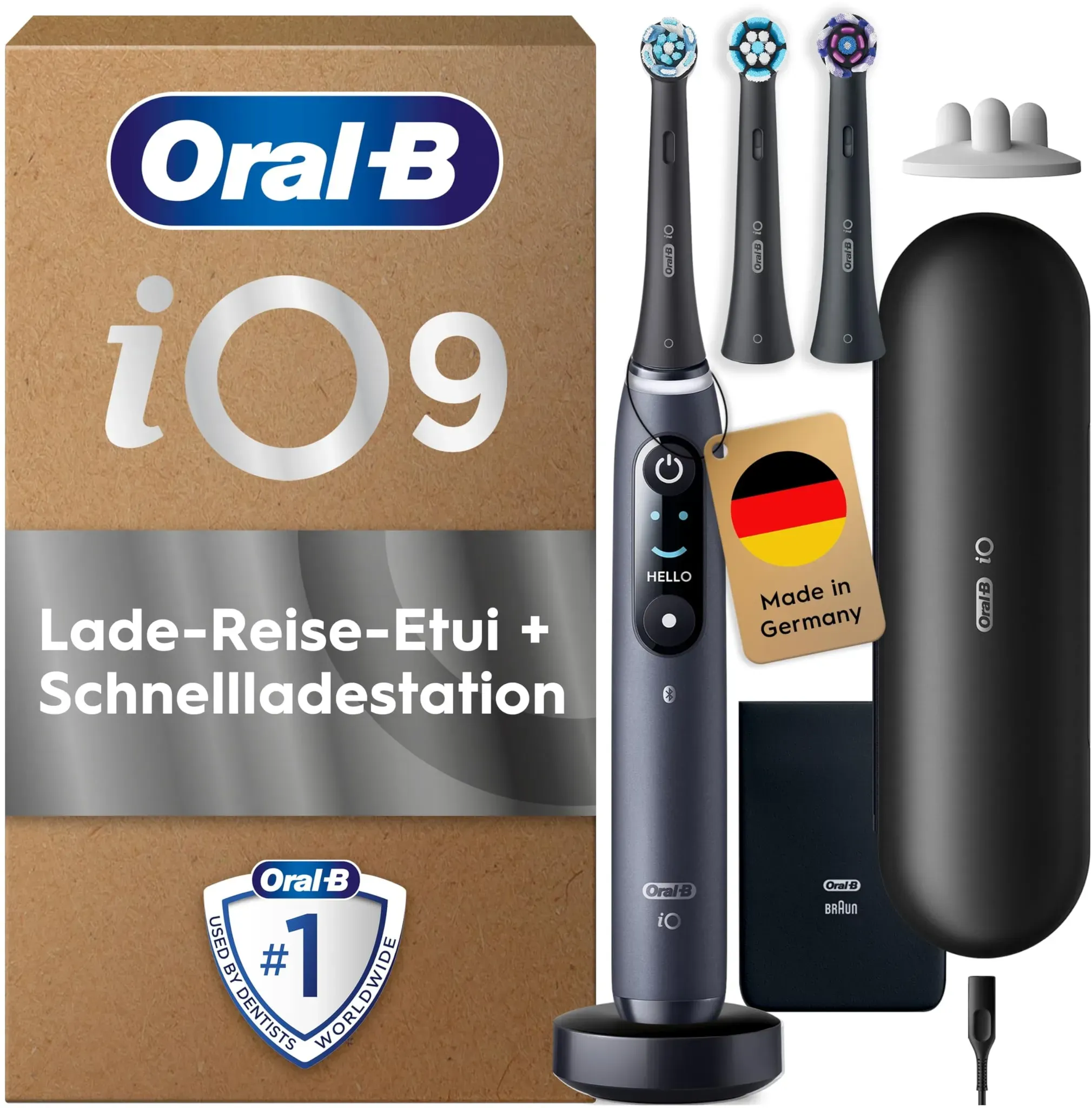 Kategorie: Elektrische Zahnbürsten - Oral-B - GTIN:4210201446088 - Das Braun Oral-B iO Series 9 Plus Edition Rose Quartz ist eine hochwertige elektrische Zahnbürste mit 7 Reinigungsmodi, künstlicher Intelligenz zur Positionsdetektion und einem intelligenten Drucksensor für eine maßgeschneiderte Mundpflege. Enthält 3 Bürstenköpfe, einen magnetischen Reisekoffer und eine Schnellladestation für Komfort zu Hause oder unterwegs. - 269,99 Euro bei Joybuy - gefunden von billiger.de Die Oral-B iO Series 9 Plus Edition in Black Onyx bietet 7 Putzmodi und ein Lade-Reiseetui für eine luxuriöse Putzerfahrung zu 273.99 Euro. ![]() ![]() Oral-B iO Series 9 Plus Edition Elektrische Zahnbürste, Electric Toothbrush, PLUS 3 Aufsteckbürsten, 7 Putzmodi für Zahnpflege, Lade-Reiseetui, Designed by Braun, black onyx
