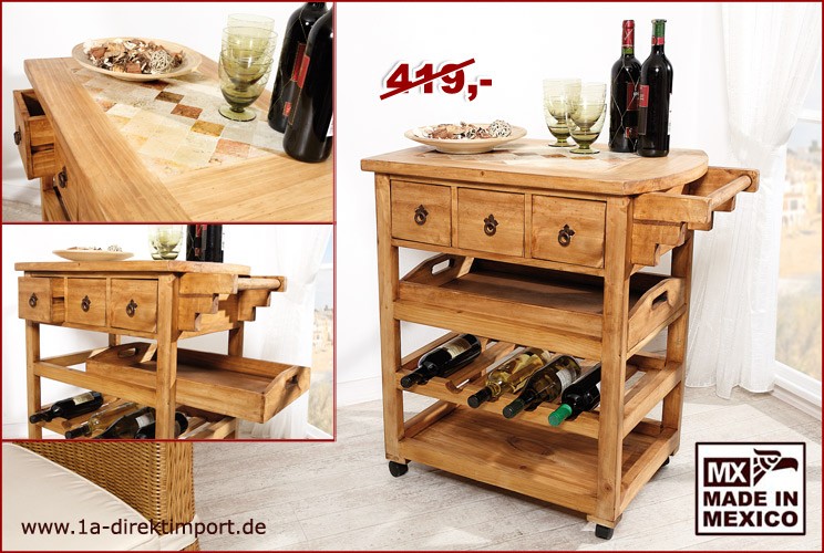 Der angezeigte Preis könnte seit dem letzten Update gestiegen sein - Ebenso schöner wie praktischer Servierwagen im typischen Mexico-Stil. Gefertigt aus massiver Pinie mit großflächiger Marmor-Mosaikeinlage. Darunter drei Schubladen, Weinablagen und ein herausnehmbares Tablett. Nachhaltig und natürlich - Ein... - Zustand: NEW - bei 1a Direktimport - gefunden von Buycentral Der Servierwagen GUTMANN FACTORY Bonnie aus Massivholz Akazie ist ein hochwertiges Möbelstück mit rustikalem Charme. ![]() Servierwagen GUTMANN FACTORY Bonnie , bunt (natur, gold), B:90cm H:81cm T:40cm, Rollwagen, Servierwagen, aus Massivholz Akazie