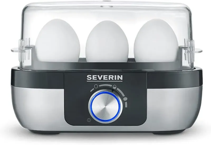 Zusammenfassung der wichtigsten Kaufkriterien: | Kriterium | Severin EK3163 (3 Eier) | |------------------------|------------------------------------------------| | Fassungsvermögen | 3 Eier | | Material | Edelstahlgehäuse, Kunststoffbasis | | Härtegradeinstellung | Elektronisch, über Drehregler | | Signalton | Ja, ca. 53 dB, gut hörbar | | Reinigung | Eierträger spülmaschinenfest, Deckel Handwäsche| | Kochzeit | Ca. 15 Minuten | | Preis | Ca. 22-34 Euro | | Kundenbewertung | Sehr gut (ca. 4,2/5 Sterne) | Wenn Sie einen kompakten, robusten und einfach zu bedienenden Eierkocher für bis zu 3 Eier suchen, ist der Severin EK3163 eine sehr empfehlenswerte Wahl mit gutem Preis-Leistungs-Verhältnis. Achten Sie auf Angebote im Bereich von etwa 22 bis 30 Euro, um ein faires Preisniveau zu finden[1][2][3][4][8]. Für die Suche im Meta-Preisvergleich können Sie direkt nach Severin EK3163 suchen. Jetzt live Suche nach severin eierkocher 3 eier starten! Empfohlene Severin eierkocher 3 eier Angebote*Durch Käufe über Links zu Händlern kann diese Website eine Provision erhalten, u.a. durch das eBay Partner Network und das AmazonPartnerNetHier ist eine Auswahl von 15 repräsentativen und empfehlenswerten Severin Eierkochern für 3 Eier, die verschiedene Preisbereiche abdecken und besonders relevant oder beliebt sind: Dieses Angebot ist mit 15 Euro das günstigste in der Liste und somit ideal für preisbewusste Käufer. ![]() ![]() Eierkocher Severin - 3-Fach Edelstahl