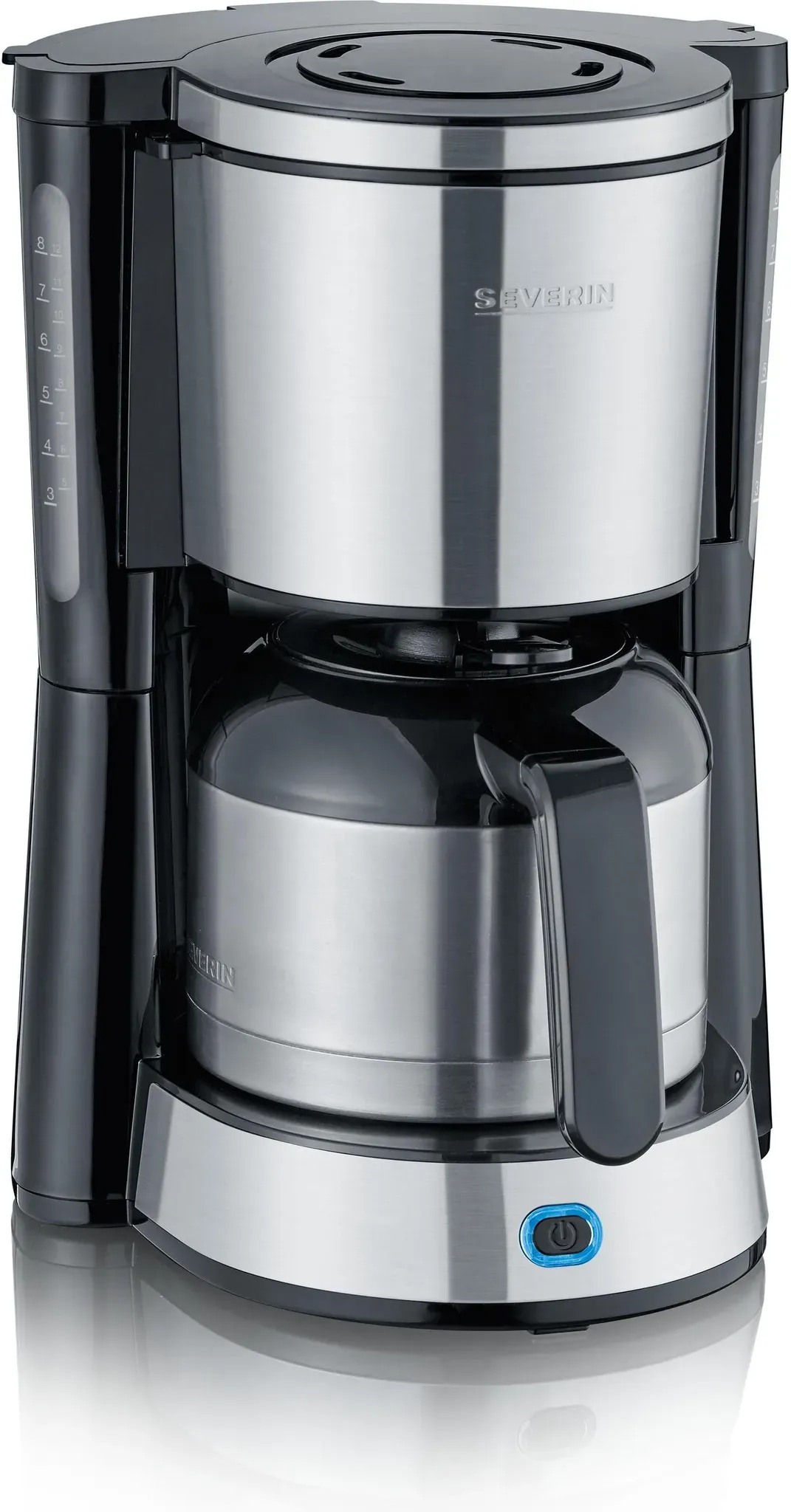 16 Händlerangebote bei billiger.de - Kategorie: Kaffeemaschinen - Severin - Professioneller Kaffeegenuss Hochwertige Filtermaschine für aromatischen Kaffeegenuss am Morgen oder zwischendurch; Für bis zu 10 Tassen Kaffee für Freunde und Familie Schnell und leise Mit dem Kaffeezubereiter wird Filterkaffee schnell und leise gebrüht, da er über ein effektives Heizelement mit bis zu 1.000 W verfügt Einfache Bedienung Dank Permanentfilter und transparenter Wasserstandanzeige kann die Filtermaschine leicht befüllt werden; Zudem zeigt die Skala die Anzahl der gewünschten Tassen an Mit Glaskanne In der Kaffeemaschine mit Glaskanne kann der Kaffee für langanhaltenden Genuss aufbewahrt werden; Aber auch zum Befüllen des Wasserbehälters ist die Kanne dank Skala ideal Details SEVERIN Filterkaffeemaschine, aromatischer Kaffeegenuss für bis zu 10 Tassen, Filtermaschine mit Glaskanne, Artikelnr. 9554 - GTIN:4008146033773 Diese Maschine mit Thermokanne ist für 49.99 Euro eine praktische Lösung, um Kaffee länger warm zu halten. ![]() Filterkaffeemaschine mit Thermokanne KA 9306 schwarz SEVERIN
