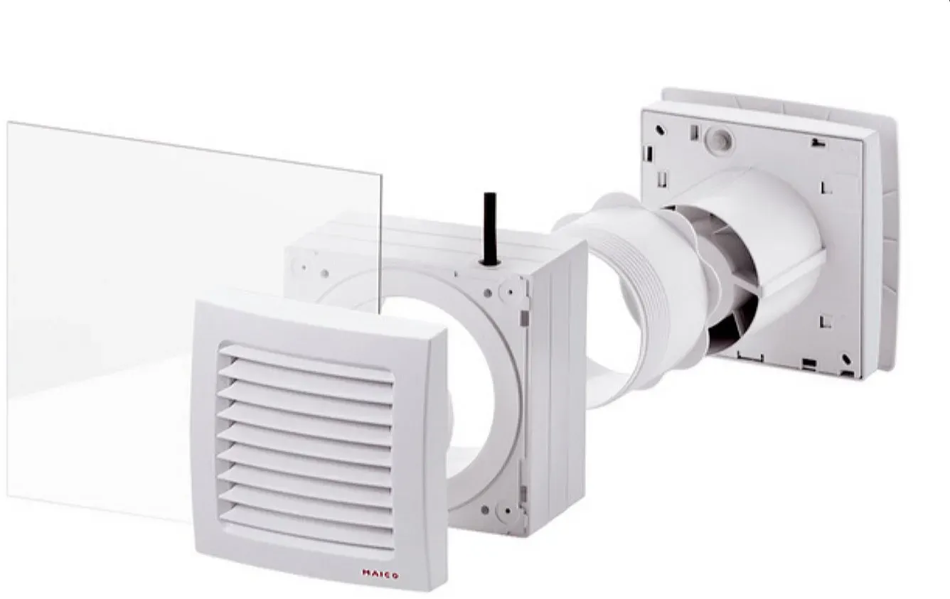 9 Händlerangebote bei billiger.de - Kategorie: Lüftungstechnik - Maico - Für den Einbau von Kleinraumventilatoren der Gruppe ECA 100 ipro in Fenster und dünne Wände. Farbe verkehrsweiß ähnlich RAL 9016. Gehäuse aus schlagfestem Kunststoff. Lieferumfang: Außenklappe AP bzw. Außengitter SG, 3 x Distanzrahmen, 2 x Dichtungsringe, Gewindestutzen, 3 x Schrauben zur Ventilatorbefestigung, Zugentlastungsbügel mit 2 x Schrauben, Leitungstülle, Montageanleitung. Montagehinweise: Einfache Montage im Fensterausschnitt durch ineinander verschraubbaren Adapter und Gewindstutzen. Scheibendicke mindestens 3 mm, Scheibenabstand bis 75 mm. Scheibenausschnitt 115 bis 120 mm. Nicht für den Einbau in aufklappbare Doppelfenster geeignet. Elektrischer Anschluss: An der Klemmleiste im Gehäuse des ECA 100 ipro...Artikel: FE 100/1 SG, Einbauort: Fenster / dünne Wand, Einbaulage: waagerecht, Material: Kunststoff, schlagfest, Farbe: verkehrsweiß, ähnlich RAL 9016, Gewicht: 0,41 kg, Gewicht mit Verpackung: 0,49 kg, Breite: 150 mm, Höhe: 150 mm, Tiefe: 103 mm, Breite mit Verpackung: 158 mm, Höhe mit Verpackung: 158 mm, Tiefe mit Verpackung: 123 mm - GTIN:4012799935001 Dieser Fenstereinbausatz mit fester Außenklappe ist eine umfassende Lösung für die Belüftung. ![]() ![]() Maico Fenstereinbausatz FE 100/1 SG m.fest.Außenklappe Zubehör für Ventilatoren 4012799935001