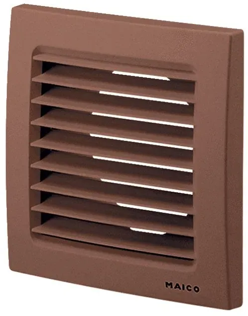 Kategorie: Lüftungstechnik - Maico - GTIN:4012799990048 - - Außengitter zur Be- und Entlüftung. - Außenwandanschluss bei Verwendung der Wandhülse WH. - Mit verdeckten Schraubenlöchern. - Dichtband im Lieferumfang enthalten. - Zubehör: Fliegengitter FG einsetzbar. - SG 100 / SG 100 B: Luftfilter nachrüstbar ZRF. - SG 120: Luftfilter nachrüstbar SF 120.Artikel:SG 100 - Luftrichtung: Be- und Entlüftung - Einbau: außen - Einbauort: Wand - Einbauart: Aufputz - Material: Kunststoff, witterungs-, UV-beständig - Farbe: verkehrsweiß, ähnlich RAL 9016 - Gewicht: 0,1 kg - Gewicht mit Verpackung: 0,13 kg - Geeignet für Nennweite: 100 mm - Breite: 150 mm - Höhe: 150 mm - Tiefe: 51,5 mm - Breite mit Verpackung: 151 mm - Höhe mit Verpackung: 151 mm - Tiefe mit Verpackung: 55 mm - Umgebungstemperatur: 60 C - Mit Maschendraht: nein - Mit Insektenschutzgitter: nein - Mit überdruckklappe, ansaugend: nein - Mit überdruckklappe, ausblasend: nein - Mit gegenrotierendem Klappenventil: nein - Mit gleichrotierender Klappenventil: nein - Mit Einbaurahmen: nein - Abschließbar: nein - Motorgesteuert: nein - 27,18 Euro bei Etoh24 - gefunden von billiger.de Ein weiteres braunes Außengitter, das eine solide und langlebige Option darstellt. ![]() ![]() Maico SG 100 B Außengitter