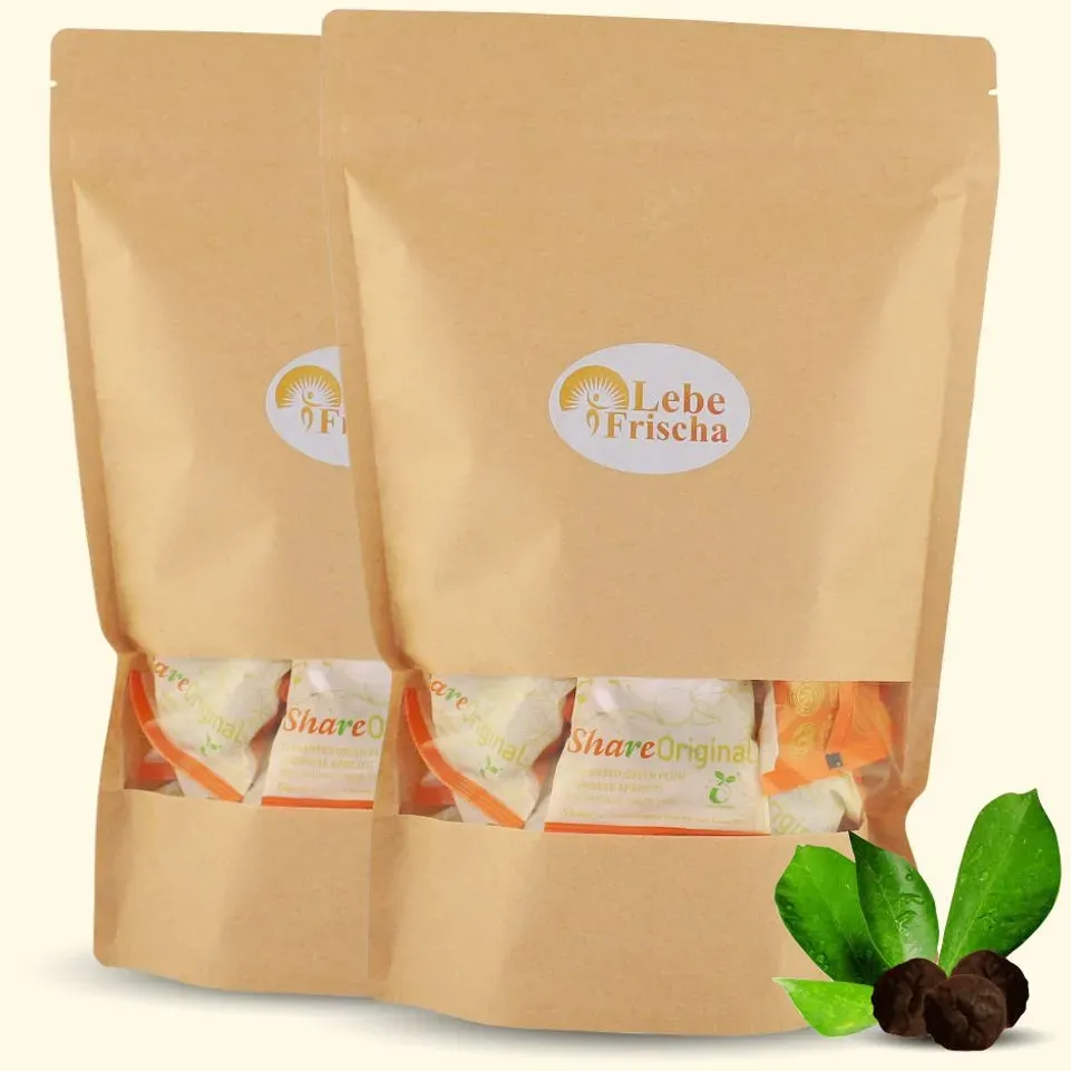 178,00 / kg - Kategorie: E-Zigaretten / Liquids & Zubehör - share original - GTIN:9120086310020 - Share Original Pflaume Das Rohprodukt der ShareOriginal wächst wild in einem großen Bienenschutzgebiet in Süd-Ost-Asien und jede einzelne Frucht wird sorgfälltig handverlesen geerntet. Botanisch gesehen handelt es sich um eine japanische Aprikose ('Prunus Mume'). Nach der Ernte wird die Frucht mindestens 30 Monate im eigenen Fruchtsaft fermentiert und mit hochwertigen Kräutern ummantelt. Die Rezeptur dieser Verarbeitung ist ein seit Jahrzehnten gut gehütetes Geheimnis. Sie gilt als Schatz der Traditionellen Chinesischen Medizin (TCM). Jede Pflaume wird einzeln luftdicht verpackt, um das volle Aroma zu erhalten. Besonderheiten: Keine Zusatz- und Konservierungsstoffe. Die Ummantelung enthält Kräuter wie Mateteeblätter, Maulbeerfruchtpulver und Karottenextrakt. Angenehmer, süß-säuerlicher Geschamck Unterstützung einer gesunden Verdauung Enthält Probiotika bür das Mikrobiom 100% vegan Zusammensetzung (pro 1 Kapsel Tagesportion): 250mg Weißer Maulbeerblätter-Extrakt (Reducose ), 250 mg Berberin HCL, 50mcg Chrom (aus Chrompicolinat) Zutaten: Fermentierte grüne Pflaumen (japanische Aprikose) Prunus Mume, Kräutermantel 0,1%. Mindestens 30 Monate lang fermentiert und gereift. Verzehrempfehlung: Die Frucht aus der Verpackung nehmen und vorsichtig kauen. Beachten Sie, dass der Kern sich noch in der Frucht befindet. ??Wichtig! Trinke anschließend ca. 500ml warmes Wasser. Das Produkt ist ... Dieses Kombi-Angebot ist ideal für alle, die die fermentierten Pflaumen zusammen mit dem Aqua dOro Getränk ausprobieren möchten. ![]() ![]() Share Original Pflaumen 500g und Aqua d'Oro 2x240ml