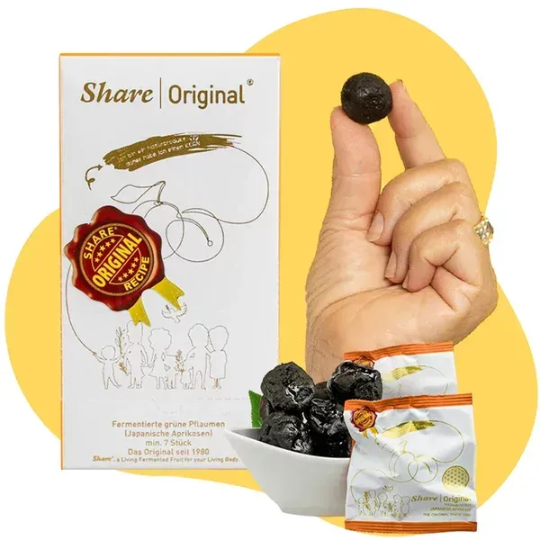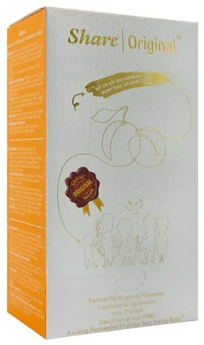 Zustand: Neu - 152,67 € / kg - Trockenobst - Share - - EAN: 7649991975138 - Fermentierte Japanische Aprikosen Mit einem Kräutermantel Nur 1 Pflaume täglich: Fruchtig süß Schweizer Qualitätsprodukt mit zertifizierter Produktion und laufenden Kontrollen Schnell und wohltuend wirksam für ein gutes Bauchgefühl Einzelverpackt: Praktisch auch auf Reisen Alle einzelverpackten Pflaumen in einem Eco-Beutel - Verkäufer: Mega Vital Shop, Preise inkl. MWSt. im amazon.de Marketplace Das gröÃ?te Paket für eine ausgedehnte Monatskur, ideal für Langzeitnutzer, die von den Vorteilen der fermentierten Pflaumen profitieren möchten. ![]() ![]() Share Pflaume Original Share Original fermentierte Pflaume 90 Stück ca. 1500g Monats-Kur japanische Aprikose