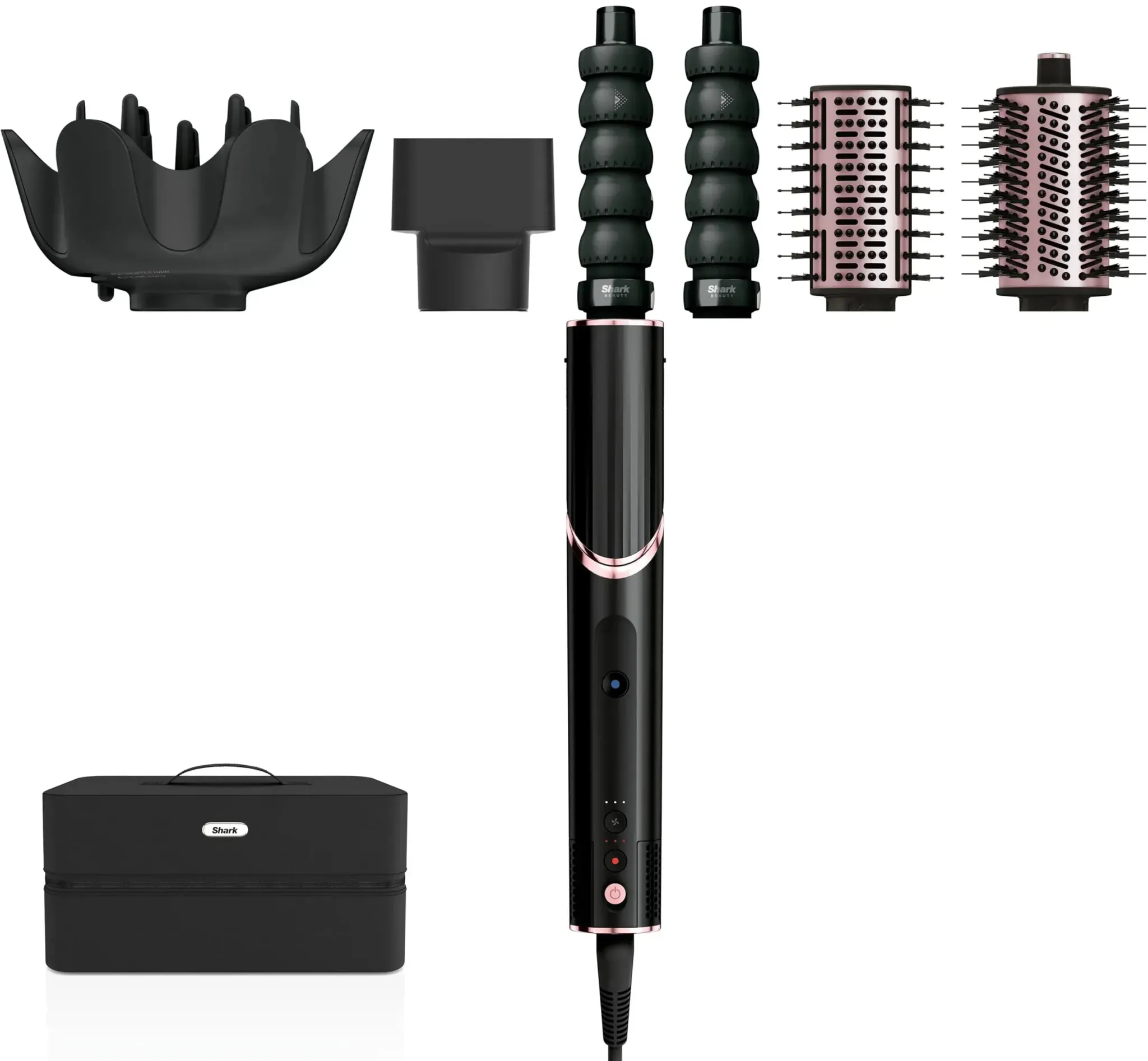 Auf Lager Versand durch AmazonShark FlexStyle Sparkle Limited Edition Gold Diamond 5-in-1 Haarstyler und -trockner mit Lockenaufsatz, Paddelbürste, Ovalbürste, Konzentrator, Diffusor, Aufbewahrungsbox, ohne Hitzeschäden HD446JSEU