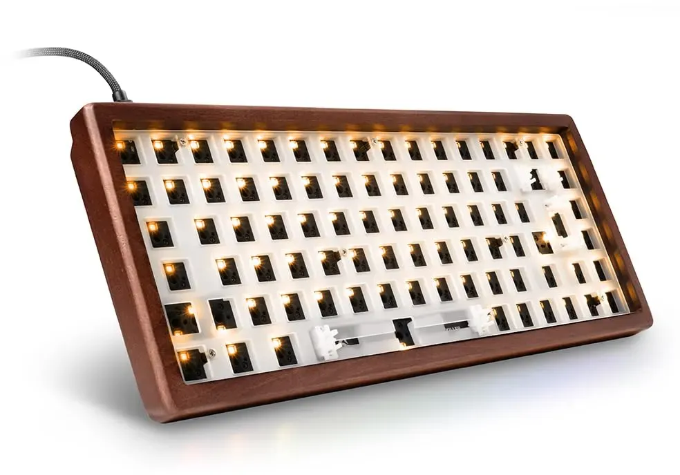Sharkoon - EAN: 4044951042685 - Kompaktes Layout bei vollen Freiheiten und einer Optik, die beeindruckt: Die Sharkoon SKILLER SGK50 S3 Wood in der Barebone-Version besitzt die gleichen technischen Vorzüge wie der Rest der S3-Serie, darunter ein PCB, das ein schnelles Wechseln von Schaltern ermöglicht, oder die vollständige Konfiguration der Tastatur mittels VIA und QMK. Der 75-%-Formfaktor mit 84 bzw. 85 Tasten richtet sich speziell an Gamer, die gerne mehr Platz auf dem Schreibtisch möchten, aber nicht auf Funktionalität verzichten wollen. Neben der stilvollen Holzoptik der Wood-Serie, kommt die Barebone-Variante für Entschlossene aber komplett ohne vorinstallierte Schalter und Tastenkappen. So lässt sie sich ganz einfach mit Schaltern nach Wahl mit 3 und 5 Pins nutzen. Selbstverständlich sind die nötigen Werkzeuge zum Wechseln schon dabei. Damit die SKILLER SGK50 S3 Wood Barebone genauso gut klingt, wie sie aussieht, ist eine Positionierungsplatte aus Polycarbonat und eine doppellagige Silikondämpfung für einen satten, dumpfen Klang ohne schrille Störgeräusche verbaut. Zudem verfügt sie über eine bezaubernde RGB-Beleuchtung und ein abnehmbares Spiralkabel für eine einzigartigen Optik, die alle Blicke auf sich zieht. - bei alternate.de - aus Yadore Produktdaten Eine weitere Option für die S4 Wood PBT mit 60% DE-Layout, die durch ihr kompaktes Design überzeugt. ![]() ![]()