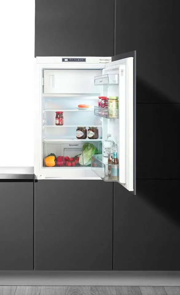 Auf Lager Versand durch AmazonSharp Einbau-Kühlschrank SJ-LD110E0XS-EU mit 4*Gefrierfach/Breite 54 cm / 88er Nische (Schlepptür) / 112L Volumen, davon 16L im Gefrierfach / 33dB / LED-Innenbeleuchtung/Elektronische Steuerung