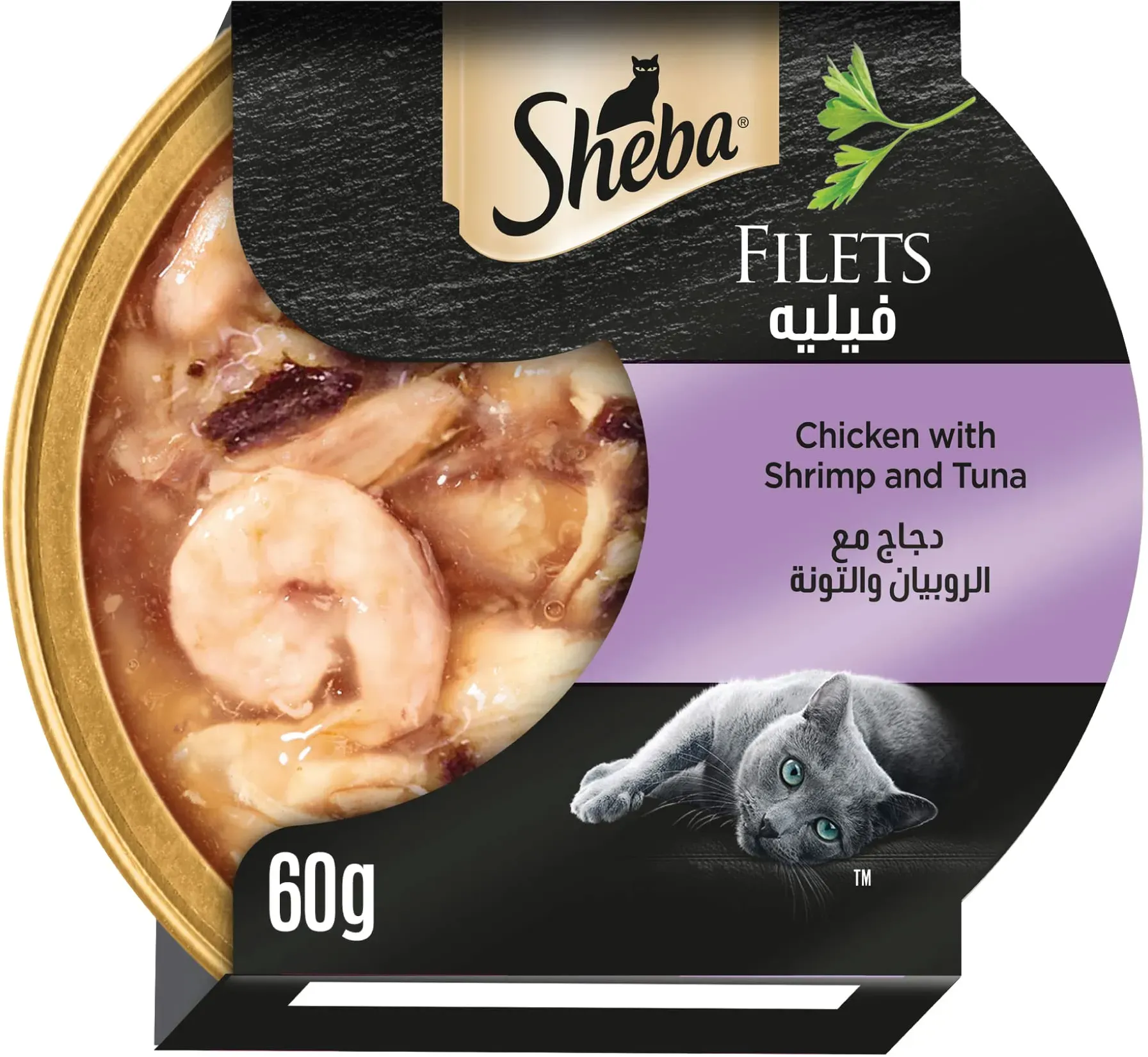 keine Angabe (Amazon Prime) Auf Lager Versand durch AmazonSheba Filets - Feinstes Katzennassfutter in der Schale - Huhn mit Garnelen - (16 x 60g), 60 g (32er Pack)