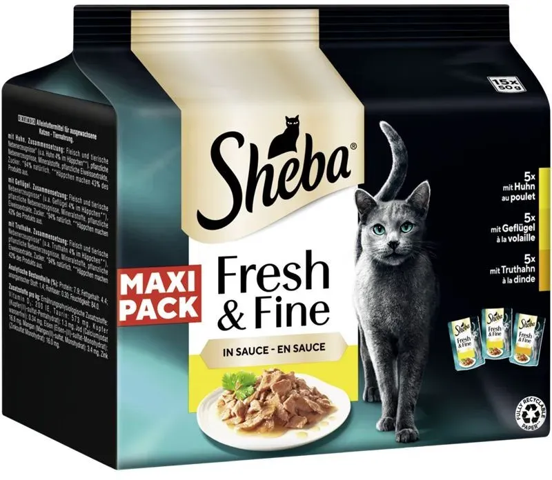 So können Sie gezielt nach den beliebtesten Varianten und besten Preisen suchen. Jetzt live Suche nach sheba sauce starten! Empfohlene Sheba sauce Angebote*Durch Käufe über Links zu Händlern kann diese Website eine Provision erhalten, u.a. durch das eBay Partner Network und das AmazonPartnerNetDieses Angebot ist empfehlenswert, da es eine kleine Packung zu einem sehr niedrigen Einzelpreis bietet, ideal zum Probieren. ![]() ![]() Sheba Fresh & Fine in Sauce mit Rind, Huhn und Lamm 6 x 50 g