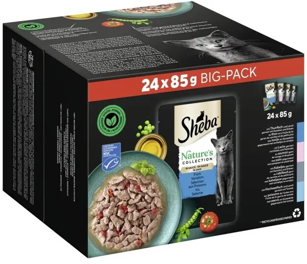 Verfügbarkeit: 1-2 Werktage - Kategorie: Katzenfutter - Sheba - GTIN:4770608264116 - Sheba Fresh & Fine in Sauce mit Huhn, Geflügel & Truthahn bietet hochwertiges, ausgewogenes Nassfutter für Katzen in praktischen, recycelbaren Portionsbeuteln. Mit feinen Stückchen in Sauce sorgt es für eine vollständige tägliche Ernährung erwachsener Katzen, frei von künstlichen Farbstoffen und Konservierungsstoffen, und wurde gemeinsam mit Experten des WALTHAMTM Petcare Science Institute entwickelt. - 4,40 Euro bei Joybuy - gefunden von billiger.de Dieses Angebot ist empfehlenswert, da es ein Multipack mit Fisch zu einem guten Preis-Leistungs-Verhältnis bietet. ![]() ![]() Sheba Portionsbeutel Multipack Natures Collection in Sauce mit Fisch 24 x 85 g