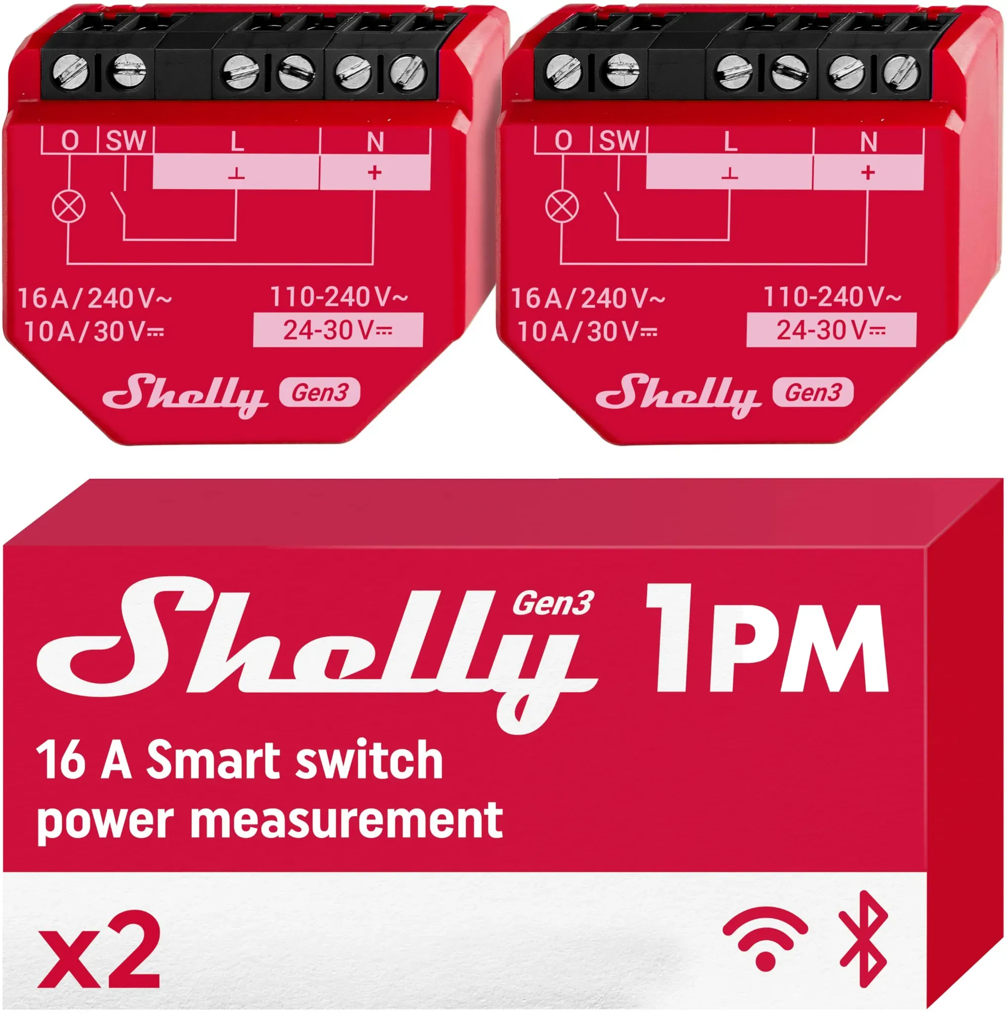 Gesamtsortiment Baumarkt + Garten Elektrobedarf Steuerungstechnik Aktor Heimautomatisierung - EAN:3800235261804 - WLAN-gesteuerter Smart Switch mit Leistungsberwachung zur Fernsteuerung einer breiten Palette von Haushalts- und Brogerten. 2-er Pack. - gefunden von Kelkoo Ein 2er-Pack des Shelly 1PM Gen3, der eine solide Basis für die Smart-Home-Automatisierung von zwei Geräten bietet. ![]() ![]() SHELLY Smart-Schalter 1PM Gen3, Relais, Unterputz, 1 Kanal, max. 16 A, WLAN, Bluetooth, 2 Stück