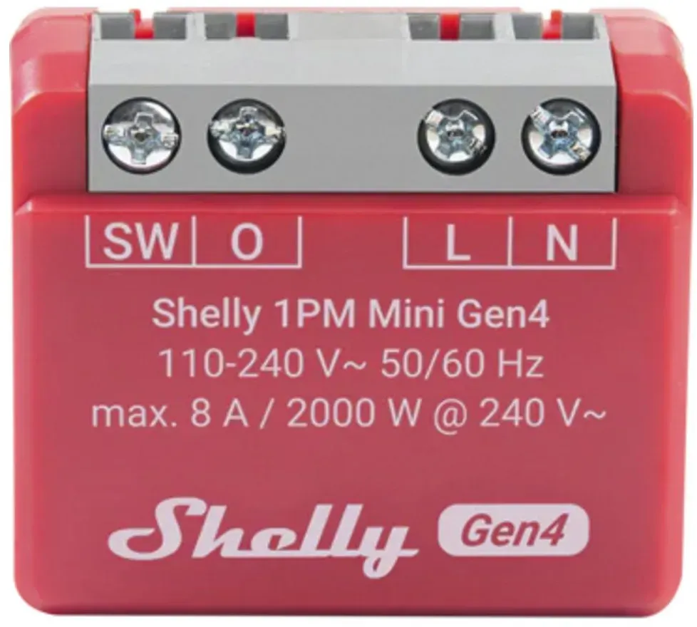 Kategorie: Sonstige Elektroinstallationsartikel - Shelly - GTIN:3800235261606 - 1-Kanal-Smart-Steuerung: Unterstützt bis zu 8A bei 240 V AC; passt platzsparend hinter Wandschalter oder in Verteilerdosen; ideal für Lichter, Ventilator und kleine Elektrogeräte Leistungsmessung: überwache den EchtzeitStromverbrauch, optimiere die Nutzung Deiner Geräte und verhindere überlastungen WLAN-gesteuert + Schnellinstallation: 2,4 GHz-WLAN für eine unterbrechungsfreie Smart-Home-Steuerung; Bluetooth für eine vereinfachte Einrichtung App- & Sprachsteuerung: Steuere Deine Geräte von überall mit der Shelly Smart Control App oder Sprachassistenten wie Alexa, Google Home und SmartThings kein Hub erforderlich Zeitpläne und Timer: Erstelle individuelle Timer und Zeitpläne oder automatisiere Dein Zuhause mit smarten Szenen Neu in Gen3: Mehr Speicher (8 MB), schnellere Performance und zukünftige Matter-Kompatibilität für noch leistungsfähigere Automatisierung - 28,62 Euro bei Amazon Marketplace Home Improvement - gefunden von billiger.de Ein solides 2er-Pack der Gen4 zu einem attraktiven Preis. ![]() ![]() Shelly 1PM Mini Gen4 Relais - rot, 2er Pack