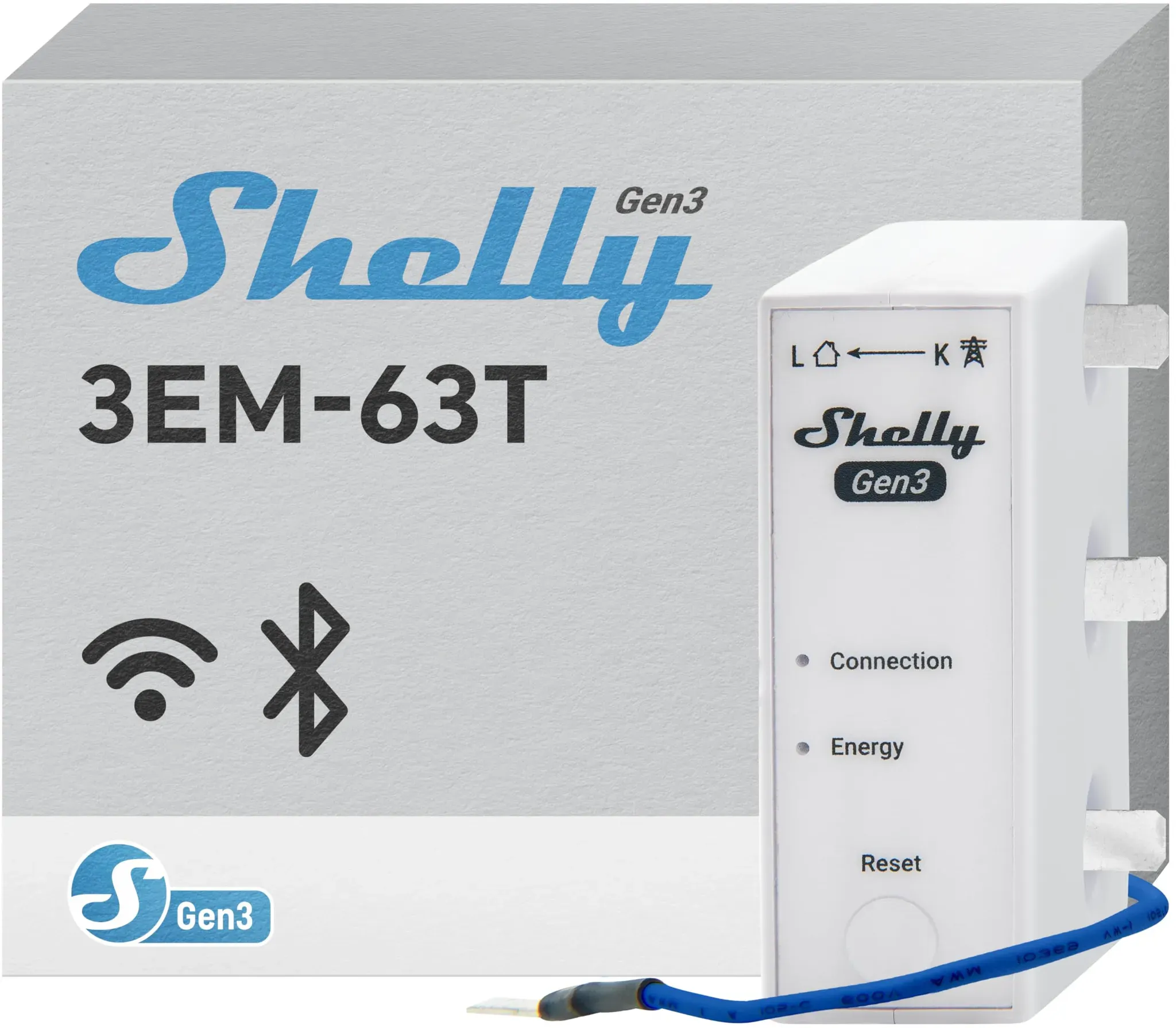 Shelly - EAN: 3800235261941 - Shelly 3EM-63T (flat terminal model) and 3EM-63W (wire model) are three-phase energy meters for measuring energy data on three individual phases with loads up to 63A and with 99% accuracy. The devices measure power, current, voltage and power factor in a resolution of one minute with real-time measurement. All energy data is stored at hourly intervals for up to 5 years with the free app and every minute with the Premium subscription. The device is available in two variants: Shelly 3EM-63T Gen3 (flat terminal model): 3800235261941 Shelly 3EM-63W Gen3 (wire model): 3800235261958 - bei proshop.de - aus Yadore Produktdaten ![]() ![]() SHELLY 3EM-63TG3 - Shelly 3EM-63T Gen3