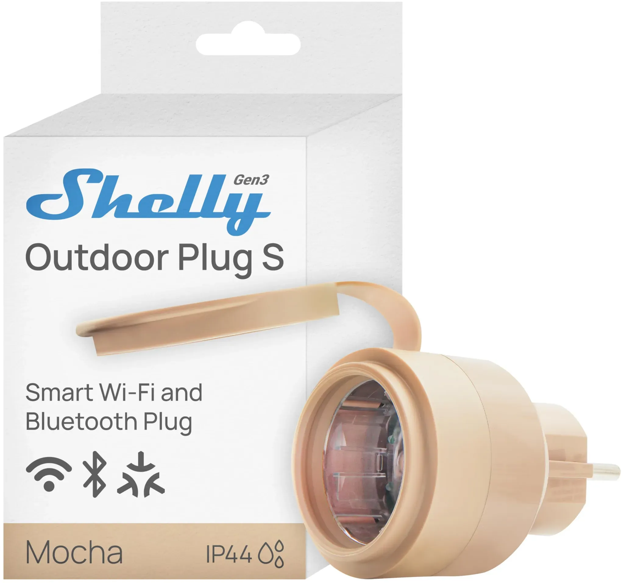 24 Händlerangebote bei billiger.de - Kategorie: Sonstige Elektroinstallationsartikel - Shelly - 12 A (2500 W), IP44, Wi-Fi, Bluetooth, Mocha Der erste Smart Plug von Shelly für den Außenbereich (IP44)! Mit Energiemessung und Matter-Unterstützung sorgt er für eine einfache Steuerung und überwachung Deiner verbundenen elektrischen Außenbereichsgeräte! Warum Shelly Outdoor Plug S Gen3? Smart, strapazierfähig und Matter-kompatibel Der Shelly Outdoor Plug S Gen3 ist der ultimative Smart Plug, der speziell für den Außenbereich entwickelt wurde. Er ist so konstruiert, dass er den Bedingungen im Freien standhält, und eignet sich perfekt zum Betreiben verschiedener Geräte bis zu 12 A. Der Plug ermöglicht die Echtzeit-überwachung des Stromverbrauchs des angeschlossenen Geräts, um eine optimale Energieeffizienz zu gewährleisten. Außerdem ist er Matter-zertifiziert und ermöglicht eine problem Integration in Dein Smart-Home-ökosystem! WLAN betrieben Verbinde den Shelly Outdoor Plug S mit Deinem WLAN-Netzwerk. Kein HUB erforderlich! Unterstützt Matter Kann in jedes Matter-ökosystem integriert werden. Vielseitige Geräteunterstützung Steuere eine Vielzahl von Geräten und Haushaltsgeräten (bis zu 12 A). Schutzklasse: IP44 Vor Spritzwasser aus allen Richtungen geschützt und gewährleistet so die Langlebigkeit im Freien. Energieüberwachung Präzise Messung des Stromverbrauchs mit der Shelly App und kostenlosem Datenspeicher. Ganz einfach Energie und Geld sparen! Smarte Szenen Erstelle ... Dieses Angebot ist mit 28.32 Euro sehr preiswert für eine einzelne Steckdose und bietet Matter-Kompatibilität. ![]() ![]() Shelly Outdoor Plug S Gen3 Zwischenstecker für draußen . 12A . Messfunktion . WLAN . Matter . BT