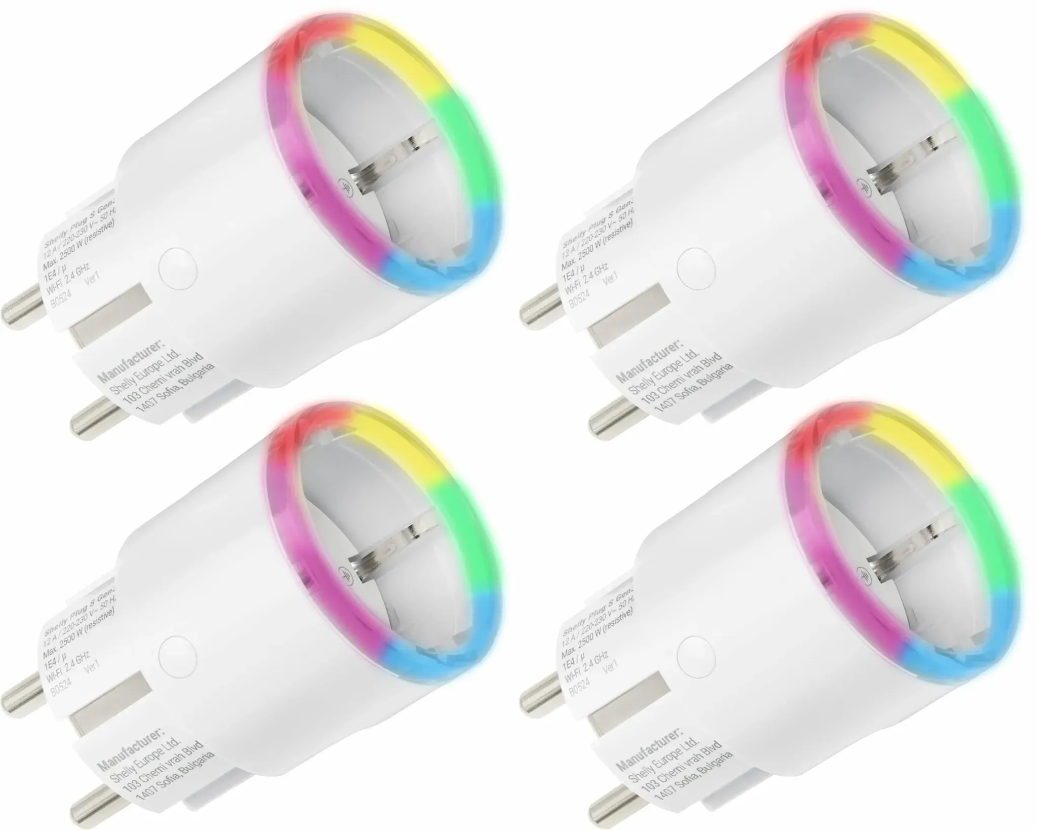 Auf Lager Versand durch AmazonShelly Plug S MTR Gen3 Weiß, 4er Pack, Matter-zertifizierte intelligente Steckdose mit Stromüberwachung und mehrfarbiger LED-Anzeige, iOS Android APP-Fernbedienung, Google Home+Alexa-Zubehör, Timer