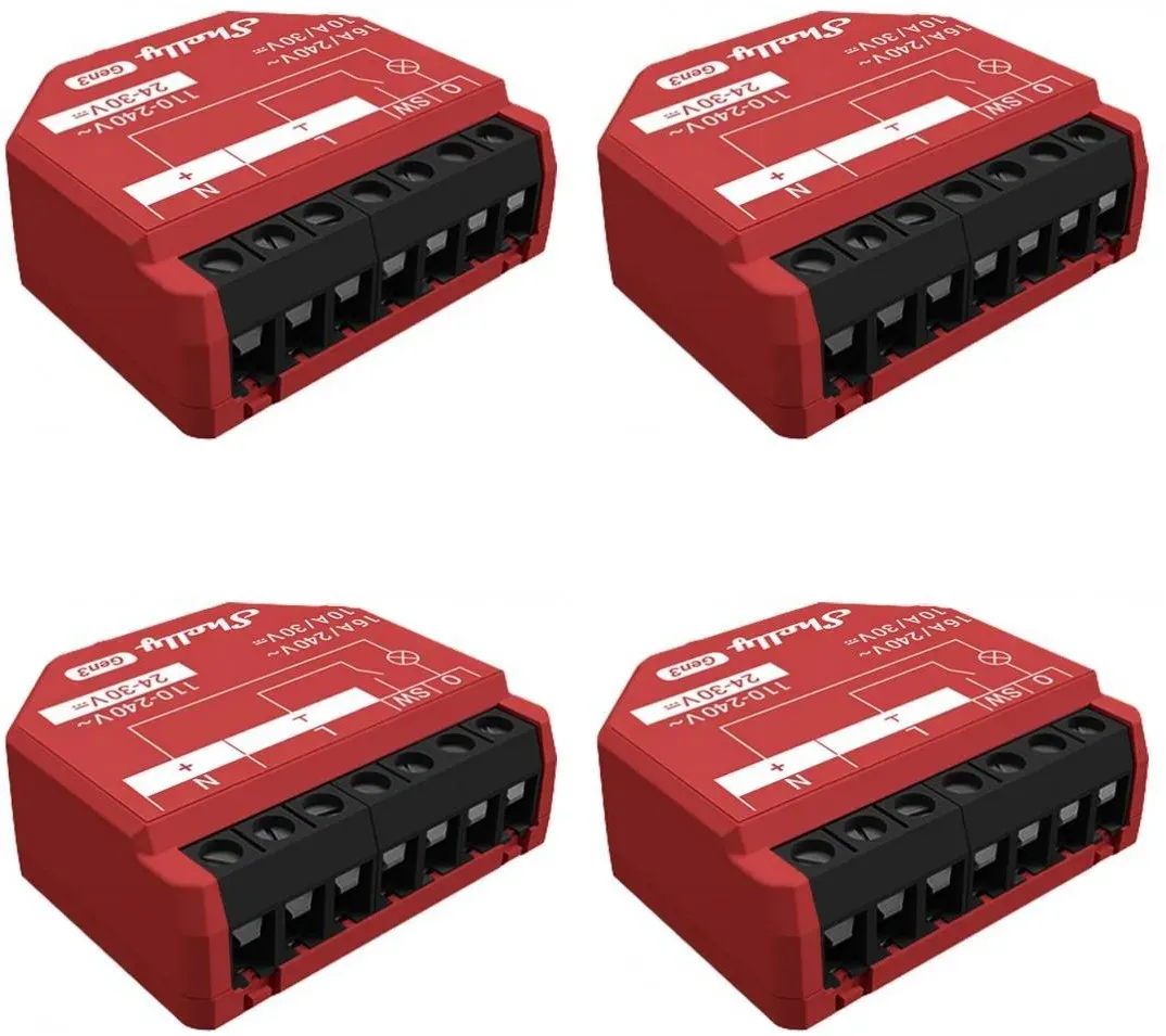 Haus- und Sicherheitstechnik Home-Automation Smart Home Shelly Heimautomatisierung - EAN:3800235261804 - WLAN-gesteuerter Smart-Schalter mit Leistungsmessung für die Fernsteuerung einer Vielzahl von Haushalts- und Bürogeräten, 2er-PackPräzise Leistungsmessung in Echtzeit mit kostenloser Cloud-Datenspeicherung zur Analyse und Optimierung des EnergieverbrauchsNeuer Prozessor - ESP-Shelly-C38F Chip mit 8 MB mehr SpeicherVerbesserte Haltbarkeit der KlemmenHohe SicherheitWLAN-Reichweitenverlängerer und Bluetooth-GatewayUnterstützt Skripting, Webhooks, MQTT, WebSocket, HTTPS, UDP, TLS und eigene ZertifikateKein HUB erforderlich! Einfache Steuerung über die Shelly Smart Control App, verschiedene Heimautomatisierungsprotokolle, Plattformen und SprachassistentenSteuern und ÜberwachenDer Shelly 1PM Gen3: Ein Smart-Schalter für effiziente Gerätesteuerung und Energieeinsparung, der mit dem neuen Shelly Chip jetzt noch leistungsstärker ist. Der Shelly 1PM eignet sich perfekt für die Automatisierung der Beleuchtung, die Steuerung von Heizungen und die Überwachung von Geräten. Er bietet zudem präzise Leistungsmessung und kostenlose Datenspeicherung für eine detaillierte Analyse Deines Verbrauchs.WLAN-betriebenVerbinde den Shelly 1PM Gen3 mit Deinem WLAN-Netzwerk. Kein HUB erforderlich!BluetoothFüge Geräte schnell und einfach per Bluetooth-Verbindung über die Shelly Smart Control App hinzu.LeistungsmessungDer Shelly 1PM Gen3 ermöglicht eine genaue Überwachung des ... Ein attraktives 4er-Pack des Shelly Plus 1PM Gen3, ideal für größere Smart-Home-Installationen. ![]() ![]() Shelly Plus 1PM Gen3, WLAN + Bluetooth Schaltaktor mit Messfunktion, 4er Pack