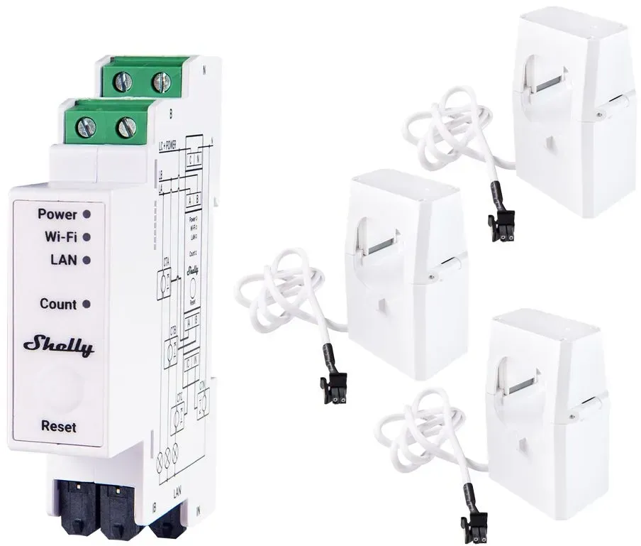Shelly - EAN: 3800235268100 - Shelly Home Relais Pro 3EM WLAN Stromzhler 3x 120A Inkl. 3 Klemmen Messfunktion - bei mindfactory.de - aus Yadore Produktdaten Ein empfehlenswertes Angebot von Lion-Energy, das das 3-Phasen Stromverbrauchsmessgerät inklusive Stromwandler zu einem fairen Preis anbietet. ![]() ![]() Shelly Pro 3EM 3-Phasen Stromverbrauchsmessgerät inkl. 3x Stromwandler 120A