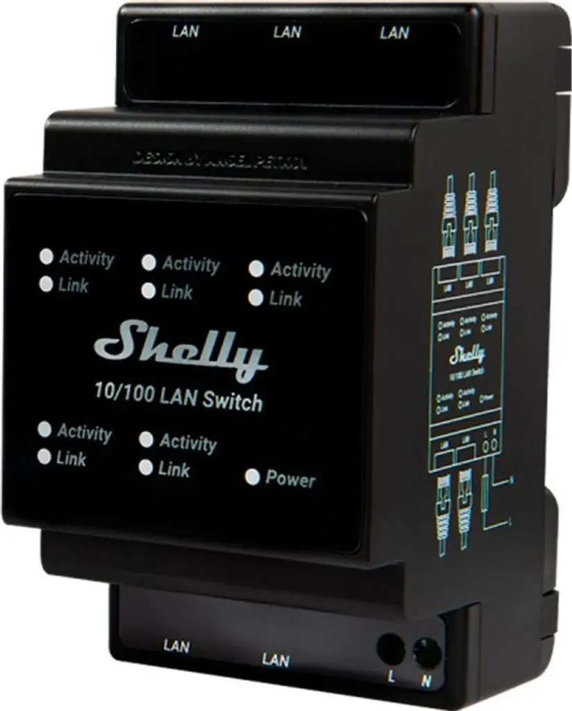 Kategorie: Sonstige Elektroinstallationsartikel - Shelly - GTIN:3800235266830 - Shelly LAN Switch ist ein DIN-montierbarer Ethernet-Switch mit 5 RJ45-Anschlüssen, der eine einfache Erweiterung der Netzwerkkapazität ohne umfangreiche Neuverkabelung ermöglicht. Dieser Switch bietet hohe Zuverlässigkeit und Leistung, was für eine konstante und stabile direkte Netzwerkverbindung sorgt. Die einfache Installation macht ihn ideal für den Einsatz in Sicherungskästen, wobei keine zusätzlichen Adapter zur Stromversorgung erforderlich sind. Mit einer Stromversorgungsspannung von 110V bis 230V und LED-Anzeigen ist der Shelly LAN Switch eine perfekte Lösung für eine stabile und organisierte Netzwerkumgebung. EigenschaftenDIN-montierbar5 RJ45-Anschlüsse10/100 MbpsLED-AnzeigenStromversorgung von 110V - 230VTechnische DatenAbmessungen (HxBxT): 96x53x59 mm / 3.78x2.01x2.32 inGewicht: 87 g / 3 ozSchraubklemmen max. Drehmoment: 0.4 Nm / 3.5 lbinQuerschnitt des Leiters: 0.5 bis 2.5 mm2 / 20 bis 14 AWGAbisolierlänge des Leiters: 6 bis 7 mm / 0.24 bis 0.28 inMontage: DIN-HutschieneGehäusematerial: KunststoffFarbe des Gehäuses: SchwarzArbeitstemperatur: -20 C bis 40 C / -5 F bis 105 FLuftfeuchtigkeit: 30% bis 70% RHMax. Höhe ü.M.: 2000 m / 6562 ftStromversorgung: 110 - 240 VACLeistungsaufnahme: 1 WExterner Schutz: Auslösecharakteristik B oder C, max. 16 A Nennstrom, min. 6 kA Ausschaltvermögen, Energiebegrenzungsklasse 3LieferumfangShelly LAN SwitchKurzanleitung - Nicht in feuchter oder extrem ... Das 4er-Pack Shelly 1PM Mini Gen3 bietet eine kostengünstige Lösung für die Steuerung mehrerer Geräte mit Leistungsmessung. ![]() ![]() Shelly 1PM Mini Gen3 | 4er Pack | WLAN- und Bluetooth-Smart-Switch-Relais, 1 Kanal 8A mit Leistungsmessung | Hausautomation | Kompatibel mit Alexa und Google Home | iOS-Android-App