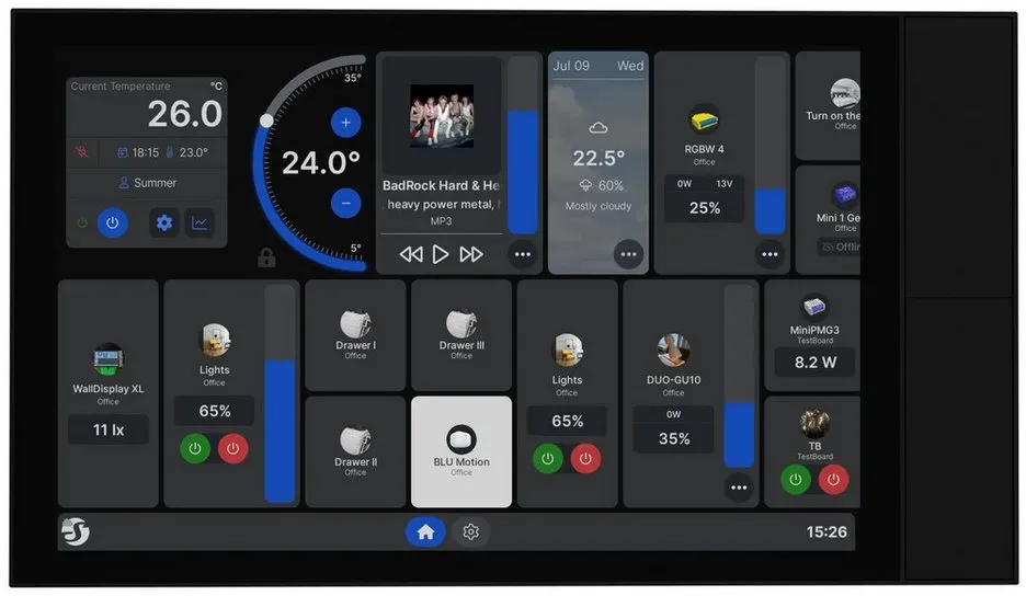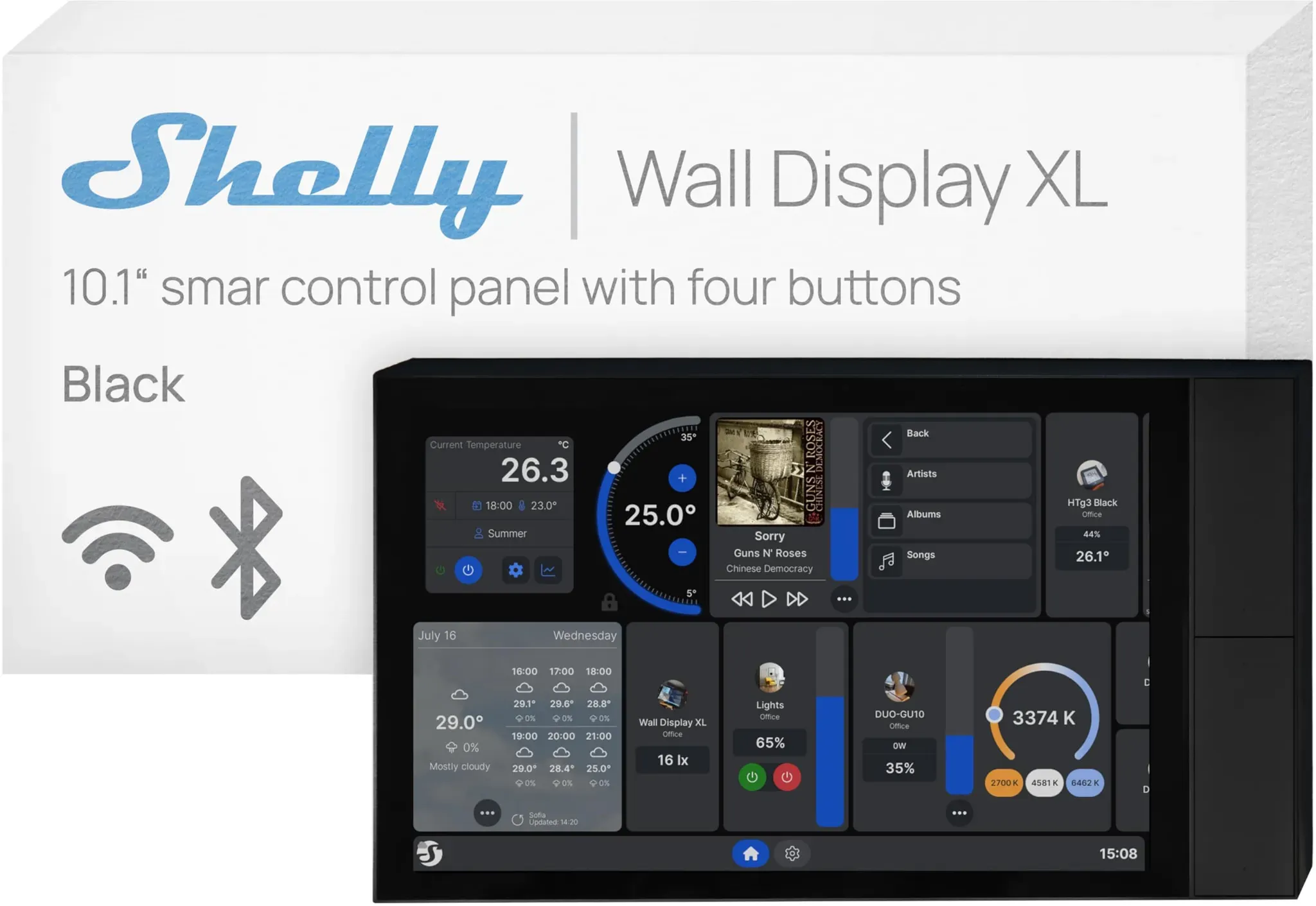 shelly - EAN: 3800238071691 - Das Shelly Wall Display XL ist ein fortschrittliches Smart Home Gateway, das eine benutzerfreundliche Steuerung von Smart-Home-Gerten ermglicht. Mit seinem berhrungsempfindlichen 10,1-Zoll-Farbdisplay bietet es eine intuitive Benutzeroberflche, die eine einfache Navigation und Anpassung des Startbildschirms erlaubt. Das Gert ist nicht nur ein Display, sondern auch ein leistungsstarker Hub, der mit verschiedenen Smart Home Systemen wie Samsung Smart Things, Amazon Alexa und Google Home kompatibel ist. Die integrierten Lautsprecher sorgen fr eine klare Audioausgabe, whrend die anpassbaren Tasten eine individuelle Steuerung der verbundenen Gerte ermglichen. Das Shelly Wall Display ist eine ideale Lsung fr alle, die ihr Smart Home effizient und komfortabel steuern mchten. - Berhrungsempfindliches 10,1-Zoll-Farbdisplay fr einfache Bedienung - Integriertes Relais zur Steuerung von Smart Home Gerten - Vollstndig anpassbare Tasten fr individuelle Steuerung - Integrierte Lautsprecher fr Audioausgabe - Kompatibel mit gngigen Smart Home Systemen wie Amazon Alexa und Google Home. - bei galaxus.de - aus Yadore Produktdaten ![]() ![]() Shelly . Unterputz.''Wall Display XL Black''. Steuerzentrale. 10.1''. WLAN. BT. (Shelly_Wall_Display_XL_s)