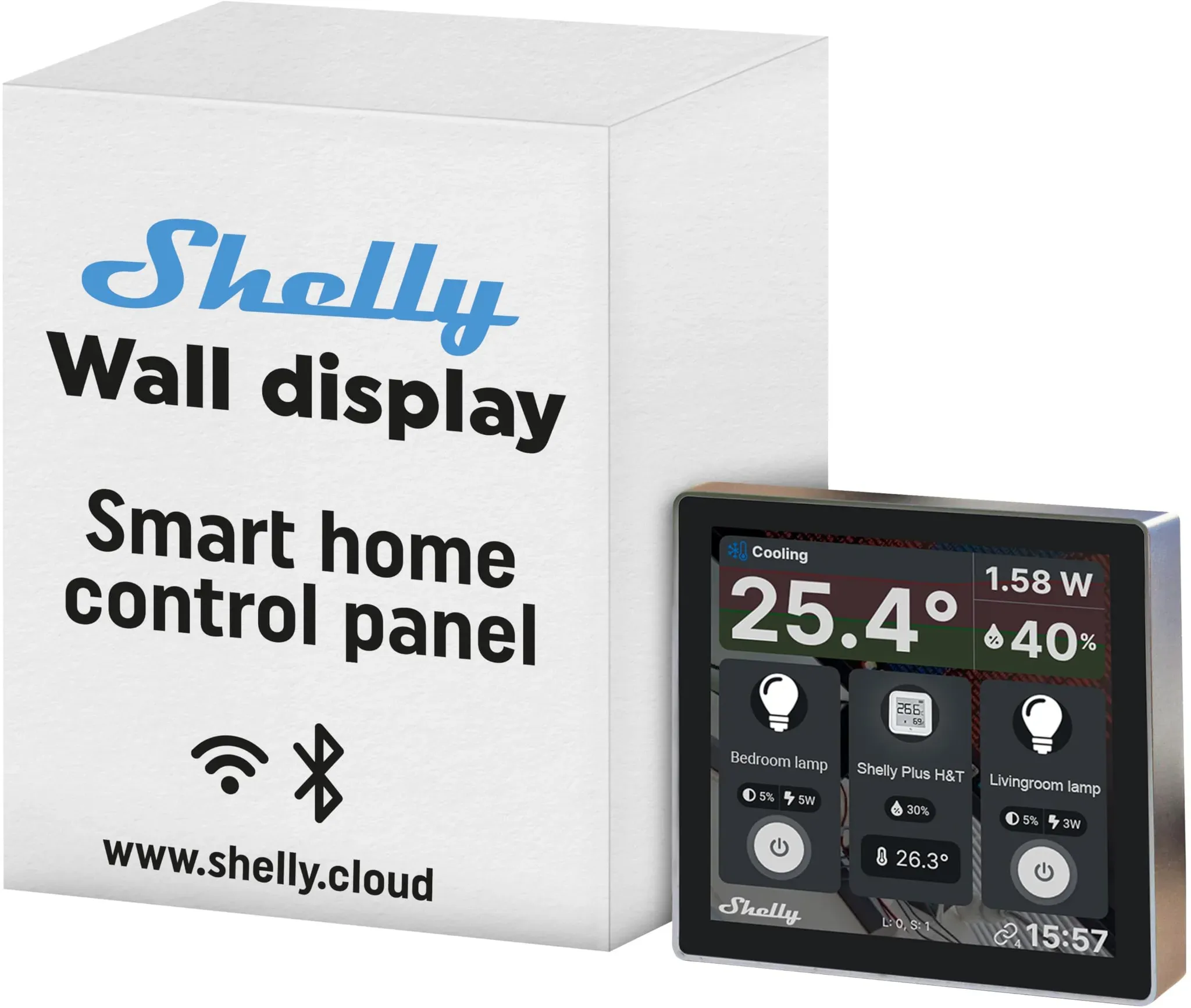 Verfügbarkeit: Auf Lager - Kategorie: Smart Home - Shelly - GTIN:3800235262603 - Shelly Wall Display ist ein Ein intelligentes Bedienfeld mit integriertem 5-A-Schalter und Farbdisplay, Thermostat-Funktionalität,Integrierter Schalter: Shelly Wall Display ist ein intuitives 4'-Wanddisplay, das Ihnen eine einfache, zentrale Steuerung und überwachung all Ihrer Shelly Geräte ermöglicht. NAVIGIEREN SIE IHR SMART HOME! -Das Shelly Wall Display ist ein hochentwickeltes 4-Zoll-Display, das intuitive Steuerung und nahtlose überwachung in jeden Winkel Ihres intelligenten Zuhauses bringt. Verabschieden Sie sich von Ihren gewöhnlichen Schaltern - jetzt können Sie Ihre Geräte mühelos mit einer einfachen Berührung ein- und ausschalten. EIN INTELLIGENTES THERMOSTAT FüR IHR ZUHAUSE - Das Shelly Wall Display kann auch als Thermostat fungieren und bietet eine intuitive Schnittstelle zur überwachung, Verwaltung und Feinjustierung Ihrer Heiz- oder Kühleinstellungen SHELLY KUNDENSERVICE - Shelly ist eine der am schnellsten wachsenden Smart Home Marken der Welt mit Geräten, die Lösungen für die Automatisierung von Privathäusern, Gebäuden und Unternehmen bieten. Wir bieten unseren Kunden professionellen Support und eine 3-jährige Geräte . Mit der SHELLY SMART CONTROL APP können Sie Ihre Shelly-Geräte aus der Ferne steuern und werden über alle automatisierten Ereignisse in Ihrem Haus benachrichtigt. Sie können die Geräte ganz einfach konfigurieren und ihre Einstellungen ... Das Shelly Wall Display X2 in Silber mit BLU H&T Silber ist eine stilvolle und funktionsreiche Option für anspruchsvolle Smart-Home-Nutzer. ![]() ![]() Shelly Wall Display x2 Silver + BLU H&T Silber (Bundle) - WLAN-Smart-Home-Bedienfeld, Thermostat, Integriertes 5A-Relais, Neutralleiter Erforderlich, Umweltdaten, Steuerzentrale, Alexa & Google Home