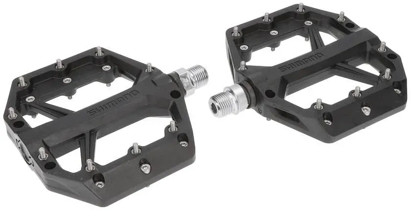 Shimano - EAN: 4550170902216 - Die Shimano PD-GR400 sind griffige Flachpedale mit einer zum Trailfahren optimierten Aufstandsfläche, die sich stabil und sicher unter dem Fuß anfühlt. In Kombination mit den Schuhen der SHIMANO GR Serie bieten sie eine erstklassige Kontrolle über das Bike. - Sicherer und stabiler Grip für bessere Kontrolle über das Bike - Dicke Pedalkörper (Mitte): 16mm - 9 herausnehmbare Stifte pro Seite - Zum Trailfahren optimierte Form der Aufstandsfläche sorgt für ein sicheres Gefühl unter dem Fuß - Größe Aufstandsfläche: 101 x 96mm - Pedalkörper aus Kunstharzverbund mit Achse in Buchsenbauweise - Montage mit 8mm-Sechskantschlüssel - Optimal in Kombination mit Schuhen der SHIMANO GR-Serie - Pedalkörper: Resin (Kunstharzverbund) - Material Achse: Stahl (CrMo) - Gewicht laut Hersteller: 394g / Paar - bei sportokay.com - aus Yadore Produktdaten Mit 33 Euro bietet dieses Angebot ein sehr gutes Preis-Leistungs-Verhältnis für ein Paar Shimano PD-GR400 Pedale. ![]() ![]() Shimano PD-GR400 - Resin mit eBay Pins 9/16 Zoll Plattform Fahrrad Pedale schwarz