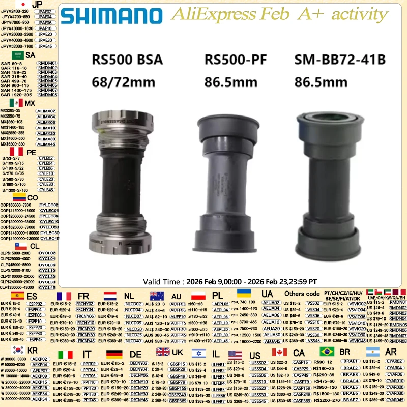 Der angezeigte Preis könnte seit dem letzten Update gestiegen sein - Shimano ULTEGRA SM-BB72-41B DURA-ACE SM-BB92-41B Press Fit 86.5mm Rennrad Tretlager BB Für Fahrrad - Zustand: NEW - bei Aliexpress DE - gefunden von Buycentral Ein solides Rennrad-Tretlager mit BSA-Gewinde, das eine gute Balance zwischen Preis und Leistung bietet. ![]() Shimano BB-RS501 SM-BBR60 BB-R9100 Rennrad BSA 68 mm Tretlager