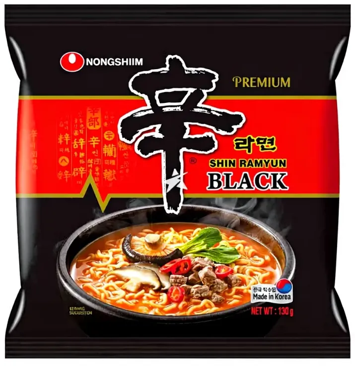 Kategorie: Fertiggerichte - Nongshim - GTIN:8801043018470 - Nongshim Shin Ramyun Toomba 137 g ist ein scharfer Nudelgenuss mit cremigem Käse-Aroma, bestehend aus Weizennudeln und einem aromatischen Gewürzpulver. Pro 100 g enthält es 410 kcal, moderate Mengen an Fett, Kohlenhydraten und Salz ideal für eine schnelle und schmackhafte Mahlzeit. - 1,99 Euro bei Joybuy - gefunden von billiger.de Für Liebhaber einer intensiveren Geschmacksrichtung ist Shin Ramyun Black eine beliebte Premium-Variante. ![]() ![]() Nongshim Shin Ramyun Black 130g
