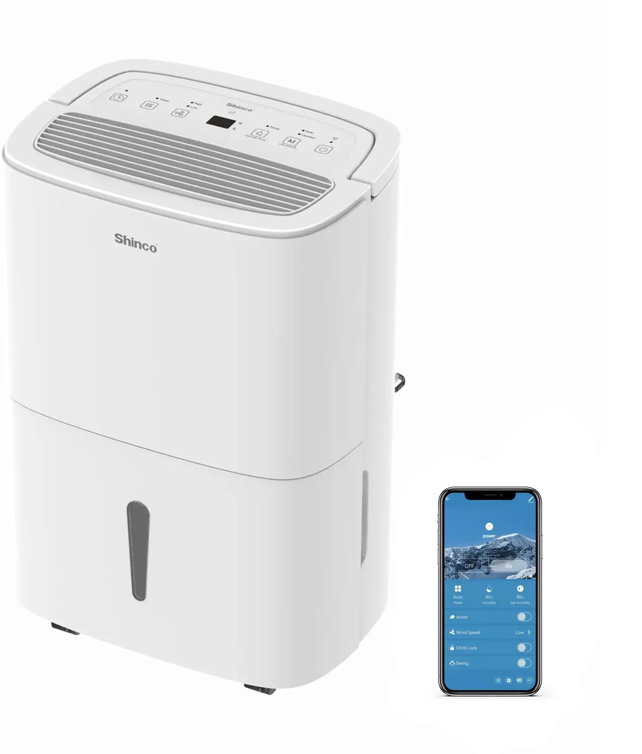 Auf Lager Versand durch AmazonSHINCO 30L,Elektrisch Luftentfeuchter, für 105m³(35m²), Wifi, Energieeinsparung, Automatischer Neustart, Wäsche trocknen, 24H Timer, 5L Wassertank, Aktivkohlefilter, kontinuierlicher Abfluss
