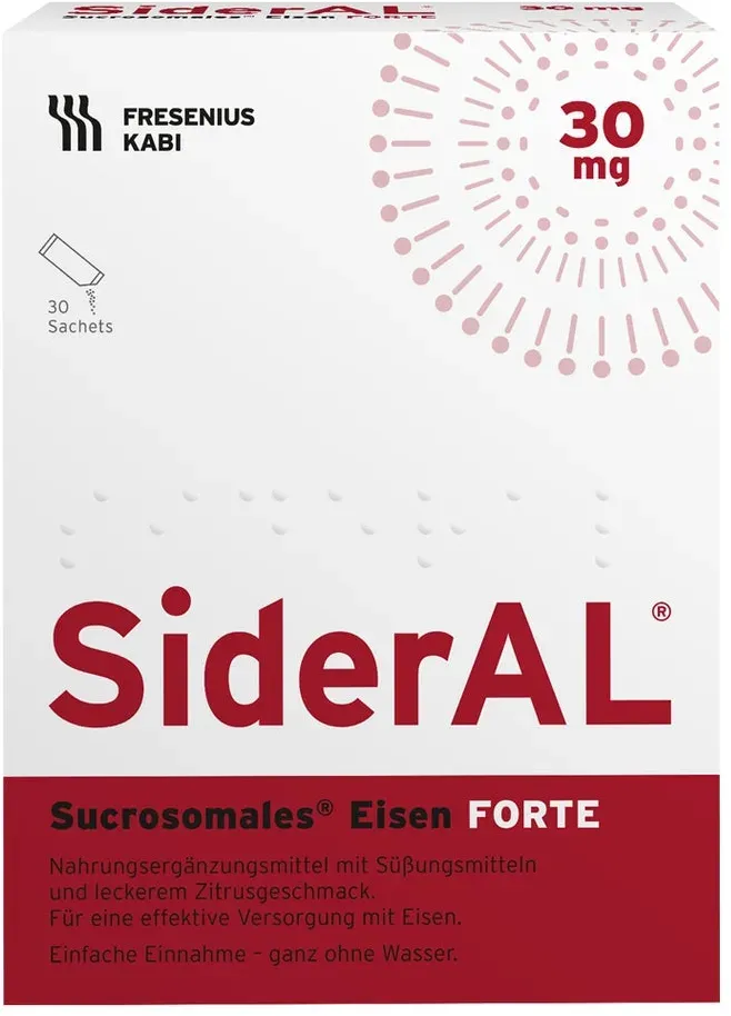 Fresenius Kabi - SiderAL Eisen FORTE 30 mg Granulat Zitrusfrucht, 30 St - bei claras-apotheke.de - aus Yadore Produktdaten ![]() ![]() Fresenius Kabi SiderAl Eisen Forte 30 mg Zitrus bei erhöhtem Eisenbedarf