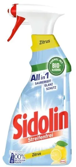 Verfügbarkeit: Auf Lager - 5.9 / l - Kategorie: Reinigungsmittel - Sidolin - GTIN:4015000969734 - Das Sidolin Cristal bietet perfekte Reinigungsleistung und langanhaltenden, streifenfreien Glanz für eine vollkommende Sauberkeit in Ihrem Haus Die innovative 3in1 Formel mit flüssigglas Technologie bietet perfekten Glanz, Schutz vor Neuverschmutzungen und füllt jetzt auch Mikrorisse in der Glasoberfläche temporär auf So verbessert sich die Reflektion und Ihre Fenster und Glasoberflächen werden glänzen wie neu Der Reiniger von Sidolin sorgt für glasklare Sauberkeit im ganzen Haus Durch die praktische Schaum- und Sprühfunktion lässt sich Sidolin ganz einfach anwenden. Einsprühen, einwirken lassen, Abwischen - fertig Hinweis: Die Abbildungen können leichte Abweichungen zu dem gelieferten Artikel aufweisen - 2,95 Euro bei Amazon Marketplace Health & Personal Care - gefunden von billiger.de Dieser Zitrus Glasreiniger bietet eine gute Balance aus Preis und Leistung für den täglichen Gebrauch. ![]() ![]() Sidolin Glasreiniger »All in 1 Streifenfrei Zitrus« 500 ml