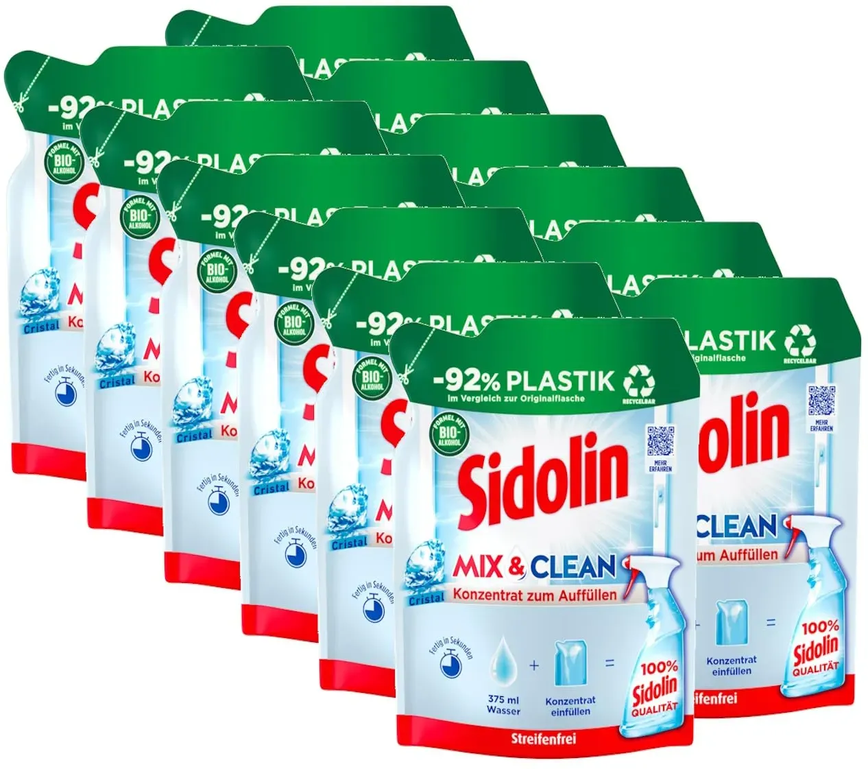 Verfügbarkeit: Auf Lager - 5.12 / l - Kategorie: Reinigungsmittel - Sidolin - GTIN:4061659013779 - Sidolin Zitrus, Sprühflasche, für einen perfekten Glanz und gegen Mikrorisse, (5 x 500 ml) Glasreiniger - 12,80 Euro bei Amazon Marketplace Health & Personal Care - gefunden von billiger.de Dieses 6er-Pack Mix & Clean Konzentrat ist eine umweltfreundliche und sparsame Wahl für nachhaltige Reinigung. ![]() ![]() SIDOLIN Mix & Clean Konzentrat zum Auffüllen Cristal (6x 125 ml), All in 1 Glasreiniger für Sauberkeit, Glanz & Schutz, Fensterreiniger mit Bio-Alkohol, -92% Plastik im Vergleich zur Originalflasche