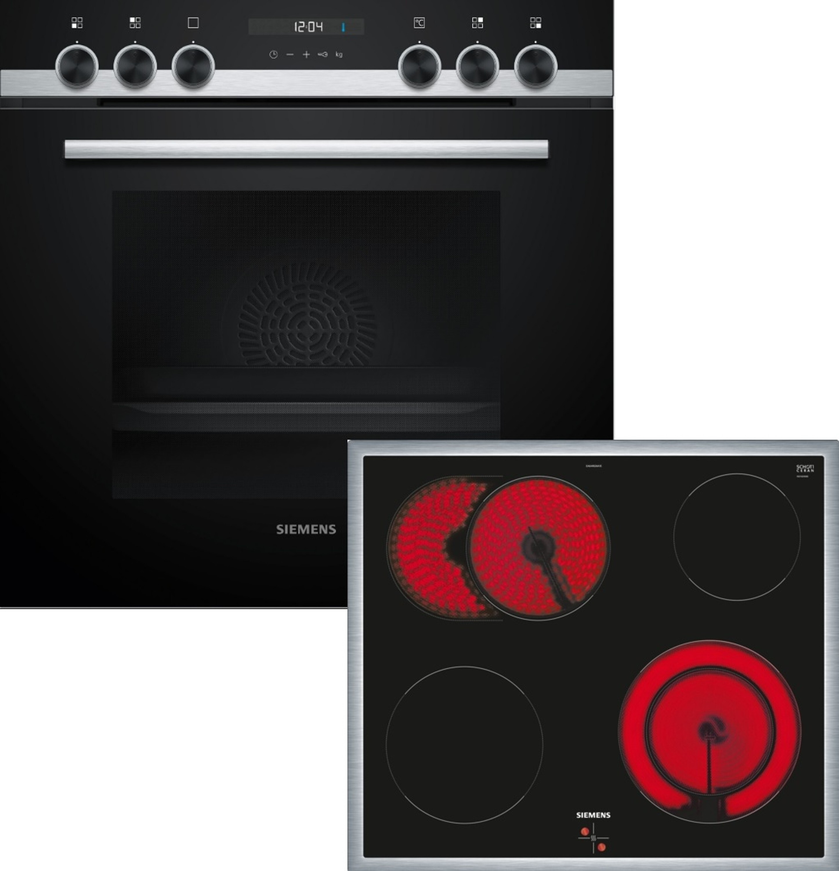 EAN: 4242003965368 - Einbauherd: Hervorragende Ergebnisse in Ihrer Küche: 3D hotAir für gleichmäßige Wärmeverteilung auf bis zu drei Ebenen. cookControl10: Automatikprogramme ren beste Ergebnisse. 3D Heißluft: gleichmäßige Hitze auf bis zu drei Ebenen. Für exzellente Ergebnisse. humidClean: schnelle Reinigung von Verschmutzungen in deinem Backofen. Schnellaufheizung: schneller zur gewünschten Backtemperatur. Elektrokochfeld: Das moderne Glaskeramik-Kochfeld für mehr Freude am Kochen und weniger Arbeit beim Saubermachen. Zweikreis-Kochzone 21 cm: Platz für große Töpfe und Pfannen. Zuschaltbare Bräterzone: Platz für große Bräter und Pfannen. Drehwähler: Bedienung der Kochzonen über die Drehwähler am Einbau-Herd. - bei homeofkitchen.shop - aus Yadore Produktdaten ![]() ![]() Siemens EQ521KB11 (EA64RGNA1E + HE517BBS3) Herdset cookControl10 Backwagen Elektrokochfeld