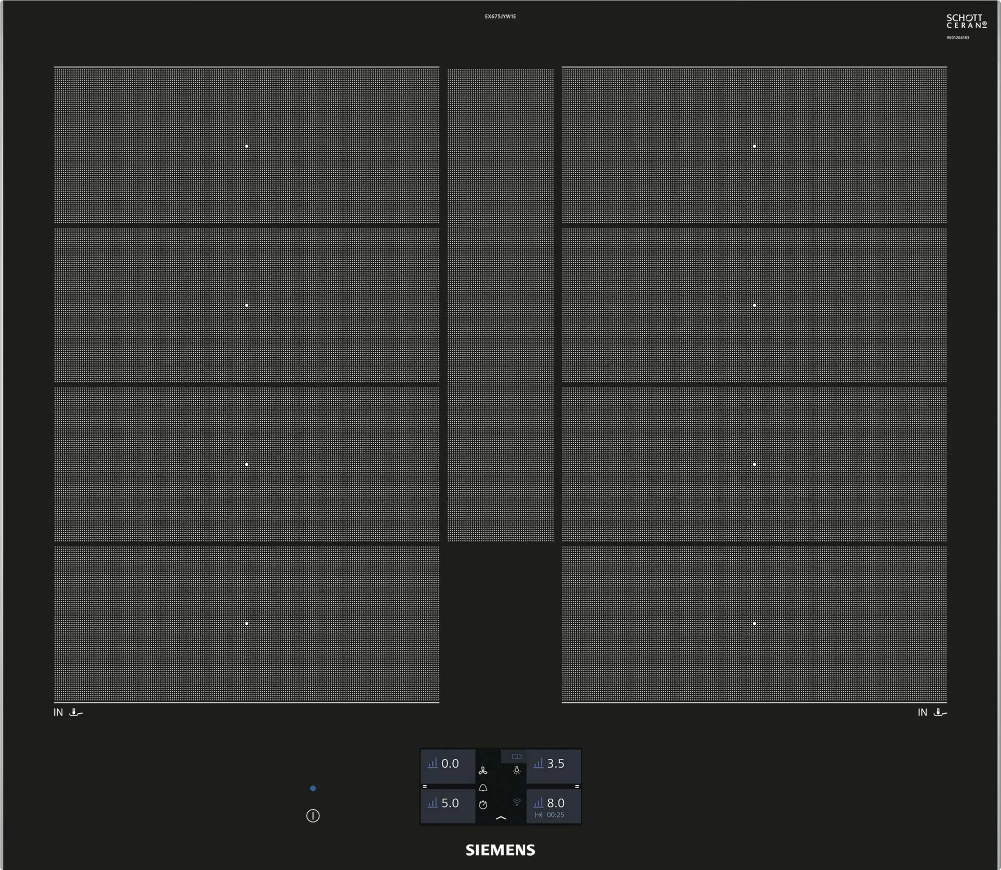 Siemens - EAN: 4242003765234 - . Kochfeldtyp: Glaskeramik-Induktionskochfeld . Bauform: Einbaukochfeld autark . Randbegrenzung: Designrahmen/Facettenschliff . Anzahl Kochzonen: 4 . Gerätemaße: 60,2 cm x 52 cm (B x T) - bei computeruniverse.net - aus Yadore Produktdaten ![]() Siemens EX675JYW1E iQ700 Einbau-Induktionskochfeld autark 60cm Facetten-Design