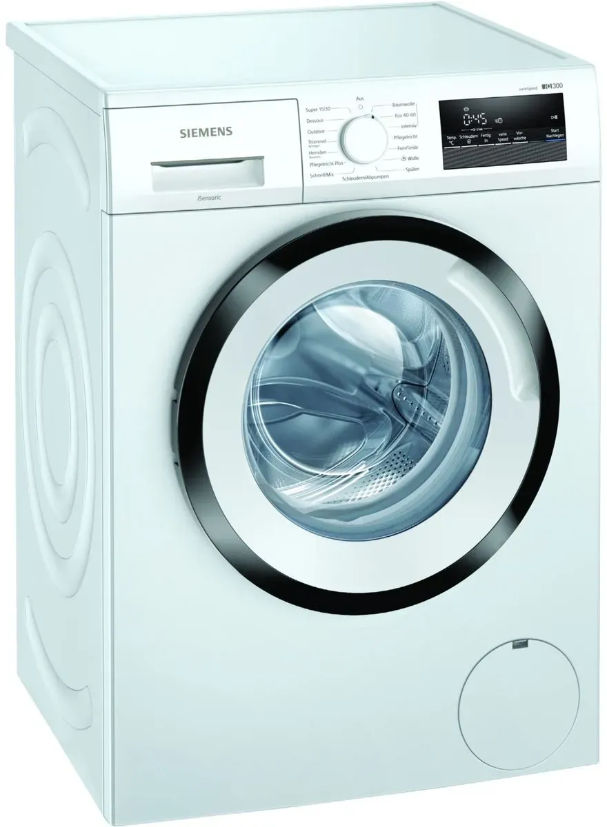 Zustand: Gebraucht - Top Brands Home Appliances - SIEMENS Siemens - WM14N127 - EAN: 4242003937303 - speedPack: Beschleunige den Waschprozess mit der zeitsparenden varioSpeed-Option. Für eine flexiblere Planbarkeit und mehr Zeit im Alltag. LED simpleTouch: Das moderne LED-Display bietet ideale Lesbarkeit und sorgt dank seiner Sensortasten für komfortable Bedienung. Outdoor/Imprägnieren: Das Waschprogramm schont hochwertige Funktionskleidung und erneuert mithilfe von Imprägniermitteln deren wasserabweisenden Eigenschaften. iQDrive: Der quasi-verschleißfreie Waschmaschinen-Motor ist leise, intelligent und wirkt Ausfällen langfristig vor. Nachlegefunktion: Socke oder T-Shirt vergessen? Dank der Nachlegefunktion können Wäschestücke auch nach Start des Waschvorgangs hinzugefügt werden. - 4 Händler im amazon.de Marketplace Dieses Angebot auf Amazon bietet eine 9 kg Waschmaschine mit 1400 U/min und nützlichen Funktionen wie speedPack L und smartFinish zu einem sehr guten Preis. ![]() ![]() Siemens WM14N12A Waschmaschine iQ300, Frontlader mit 9kg Fassungsvermögen, 1400 UpM, speedPack L, smartFinish, Outdoor-Programm, LED-Display, Weiß, 60cm