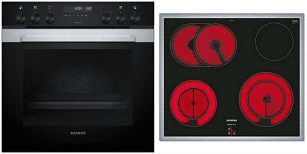 EEK: A+ - Kategorie: Herd-Sets - Siemens - GTIN:4242003965177 - Elektro-Kochfeld 60 cm Herdgesteuert, Schwarz, Mit Rahmen Aufliegend, Einbau-Herd 60 x 60 cm, Edelstahl - 1139,00 Euro bei expert TechnoMarkt - gefunden von billiger.de ![]() Siemens MKP3KC64 (EA645GH17M + HE378GAS3) Herdset groß AutoClean activeClean mit 60 cm Glaskeramik Kochfeld (inkl. Lieferung zum Aufstellungsort)