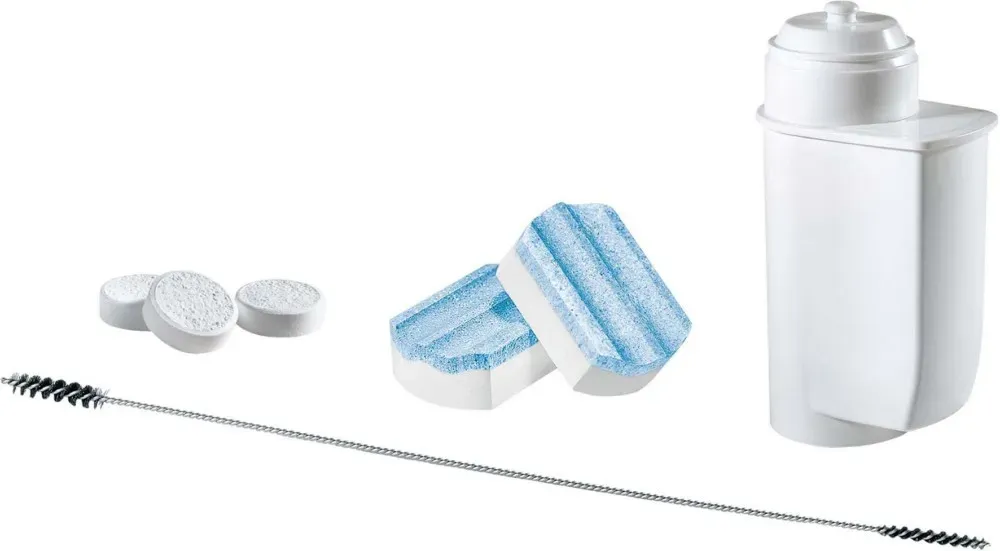 Zustand: Neu - Entkalker Entkalkung & Reinigung für Kaffee- & Espressomaschinen - Generisch Wessper - TZ80001_+_TZ8002_+_2X_WES042___2 TZ80001_+_TZ8002_+_2X_WES042___2 - - Regelmäßige Reinigung verlängert die Lebensdauer Ihrer Kaffeemaschine und verbessert spürbar den Kaffeegeschmack - Tag für Tag beste Qualität täglich. Reinigungstabletten schützen das Gerät vor Ablagerungen und Verunreinigungen, die Leistung und Geschmack deutlich beeinträchtigen. Für stetigen Genuss. Sauberes Wasser, reinster Geschmack: patentierter Durchfluss und Filter mit mikroskopisch kleinen Öffnungen blockieren Verunreinigungen. Klarer Genuss. Regelmäßiges Entkalken sorgt für beste Maschinenleistung sowie vollen Geschmack und volles Aroma bei jeder Tasse Kaffee. Für Langlebigkeit im Gebrauch. Set-Inhalt: 10 Reinigungstabletten Siemens EQ.series, 3 Entkalkungstabletten 2in1 Siemens EQ.series, 2 Filter Wessper AquaIntense. Perfekt abgestimmt. - Verkäufer: agdmaster im amazon.de Marketplace Dieses 2er-Pack des Pflegesets von kaufland.de für 54 Euro ist ideal für Nutzer, die einen Vorrat anlegen möchten und somit pro Set etwas sparen. ![]() kaufland.d e Siemens EQ.series espresso care TZ80004A Pflegeset (2er Pack)