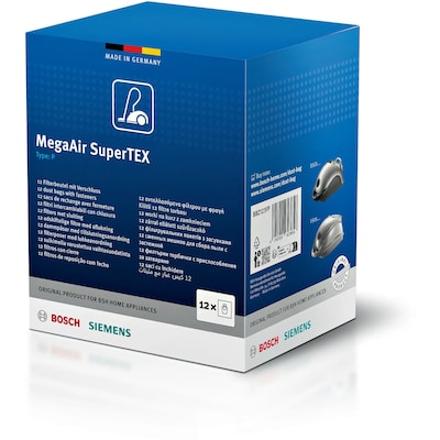 EAN: 4242002623856 - 12 Staubsaugerbeutel mit Verschluss 3 Mikro-Hygienefilter Geeignet für die Baureihen:BSG8... und VS08... - bei computeruniverse.net - aus Yadore Produktdaten Dieses Angebot ist empfehlenswert, da es sich um ein Original Siemens Produkt handelt und eine größere Packungseinheit von 12 Stück bietet. ![]() ![]() Siemens VZ123FP MegaAir SuperTEX Typ P 12 St.