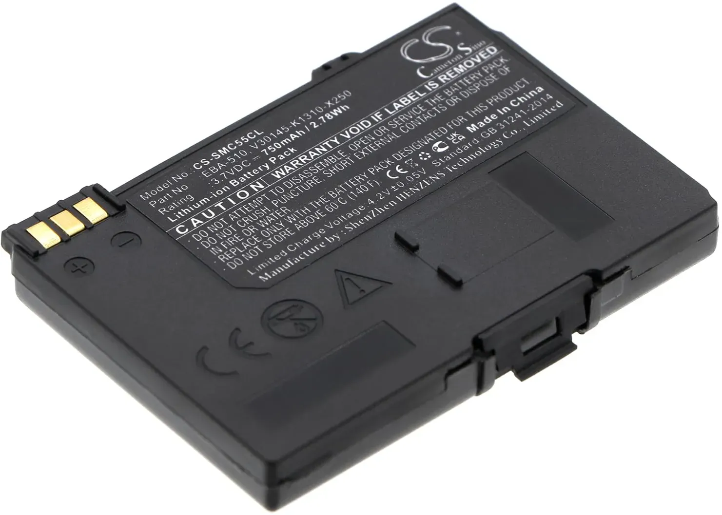 Zustand: Neu - Akkus & Batterien Akkus & Batterien für Telefone - Cameron Sino - CS-SMC55CL - EAN: 4894129656547 - EBA-510,L36145-K1310-X401,L36880-N5601-A100,S30852-D1752-X1,V30145-K1310-X250,V30145-K1310-X401 Spannung: 3.7V Typ: Li-ion Farbe: Schwarz Kapazität: 750mAh - Verkäufer: Techtek gmbh im amazon.de Marketplace ![]() ![]()