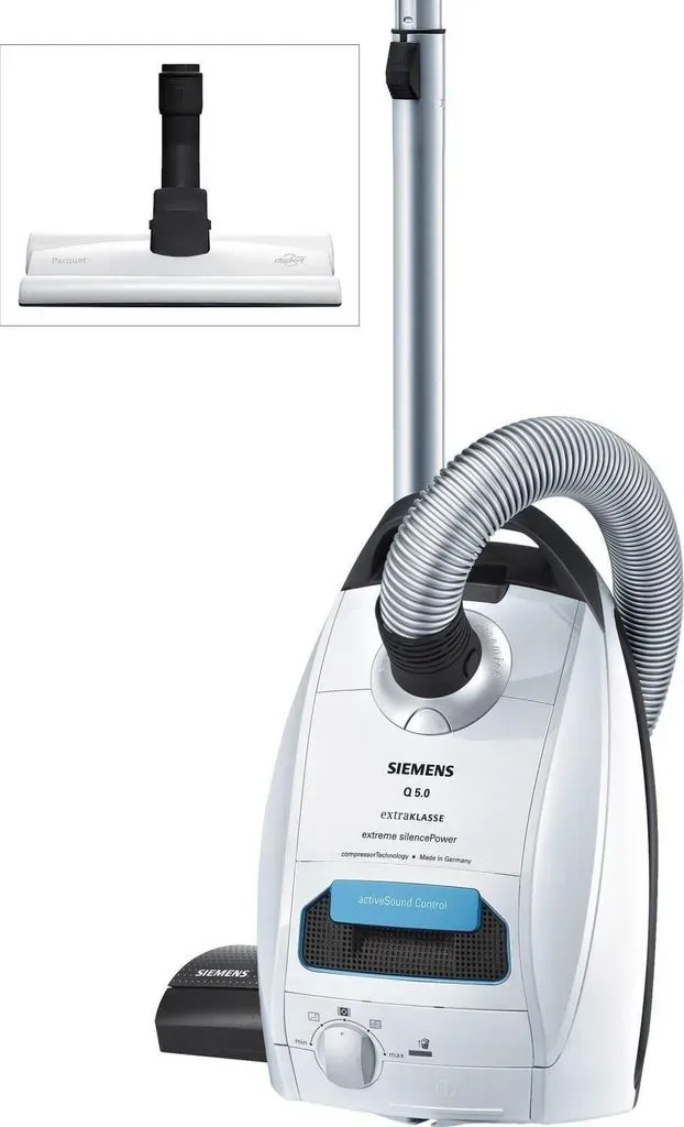 Zustand: Gebraucht - Bodenstaubsauger - SIEMENS Siemens - VSQ5X1232 - EAN: 4242003977804 - Gründliche Staubaufnahme: compressorTechnology mit aerodynamischen Gebläseschaufelrädern und perfekt abgestimmter Luftführung für hohe Staubaufnahme Waschbarer HEPA Hygienefilter: Hohe Filtration für saubere Ausblasluft und damit ideal für Allergiker 13 m Aktionsradius: Extra langes Kabel für eine größere Reichweite und weniger Steckdosenwechsel XL-Staubbeutelvolumen: Für seltenere Beutelwechsel und geringe Folgekosten Lieferumfang: Staubsauger mit Beutel, Fugen- und Polsterdüse in das Gerät integriert, Hartbodendüse, umschaltbare Rollendüse, verstellbares Teleskoprohr - 12 Händler im amazon.de Marketplace billiger.de listet den Siemens Q5.0 Extreme silencePower VSQ5X12M1 in Weiß zu einem sehr attraktiven Preis, was ihn zu einer preiswerten Wahl macht. ![]() ![]() Siemens Q5.0 Extreme silencePower VSQ5X12M1 weiß