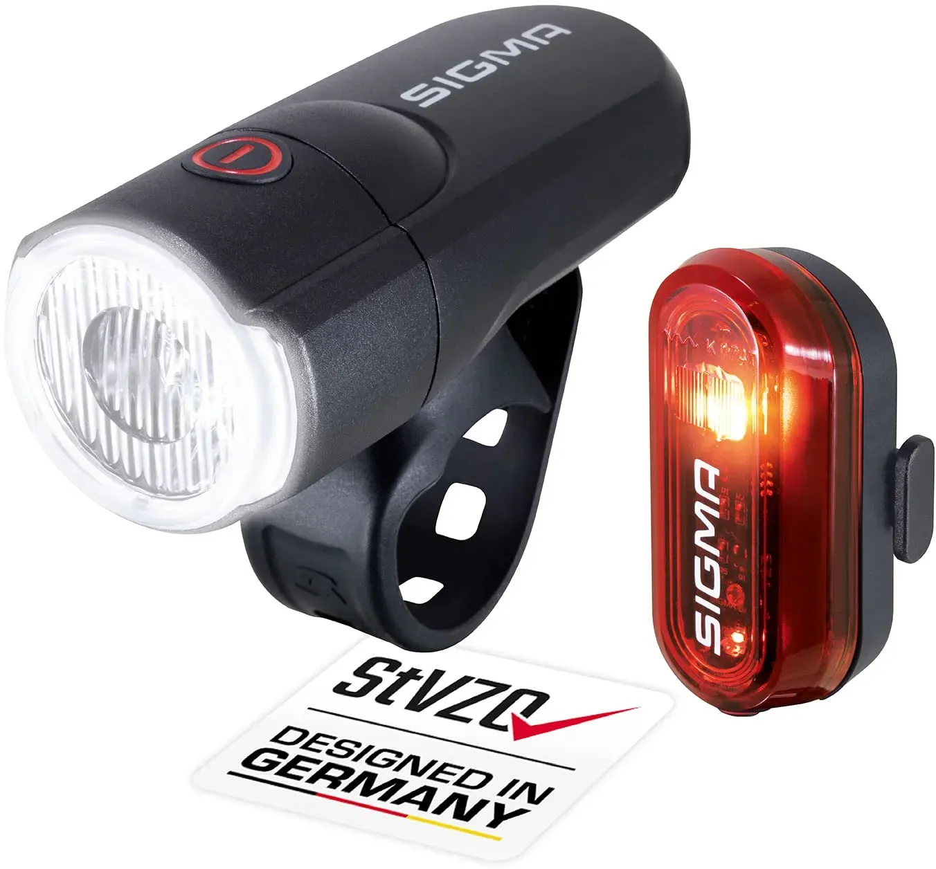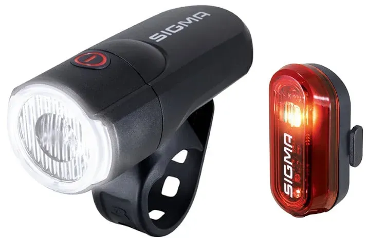 Auf Lager Versand durch AmazonSIGMA Aura 30 & Curve | batteriebetriebenes Fahrradlichter Set | Werkzeuglose Montage | Spritzwassergeschützt | StVZO Zugelassen | Fahrradlicht Vorne +Hinten