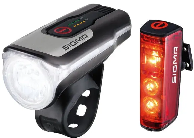 Kategorie: Fahrradlampen - Sigma - GTIN:4016224178605 - Sigma Beleuchtungsset Aura 80 FL /Rücklicht Blaze - Beleuchtung Technologie: LED Lichtstärke in Lux: 80 Stromquelle: Akku Befestigung: Lenker StVZO zugelassen: Ja - 57,95 Euro bei Liquid-Life - gefunden von billiger.de Dieses Amazon Marketplace Angebot für 59.95 Euro hebt die StVZO-Zulassung und die Bremsfunktion des Rücklichts hervor, was für Sicherheit und Komfort spricht. ![]() ![]()
