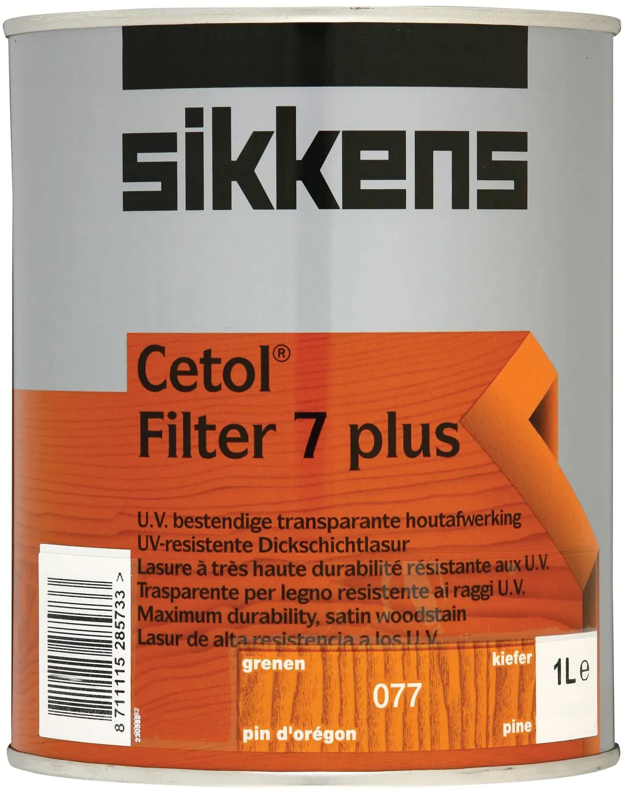 8 Händlerangebote bei billiger.de - Kategorie: Farben & Lacke - Sikkens - Seidenglänzende Dickschichtlasur (Long-Life-Lasur) für außen. Bietet für einheimische und tropische Laub- und Nadelhölzer einen langlebigen Schutz mit brillanter Transparenz. ist die ideale Lasur für maßhaltige Holzbauteile. Durch die neue Advanced Filter Technology erzielt die lösemittelhaltige Dickschichtlasur höchsten Wetterschutz mit perfektem transparenten Finish. Premium-Schutz für hochwertiges Holz. Sikkens Cetol Filter 7 Plus altkiefer 1L Sikkens Cetol Filter 7 Plus, 16 m2/L, 1 l Sikkens Cetol Filter 7 Plus. Beste Verwendung: Tür, Fenster, Hartholz, Weichholz, Oberflächentyp: Satiniert-glänzende Oberfläche, Volumen (l): 1 l. Paketgewicht: 1,06 kg. Produkte pro Palette: 462 Stück(e) - GTIN:8711115285641 Für 35 Euro erhalten Sie 1 Liter in Teak, eine beliebte Farbe für den Außenbereich. ![]() ![]() Sikkens 1L Cetol Filter 7-Plus, durchscheinende Holzbeize, Teak SIKCF7PT