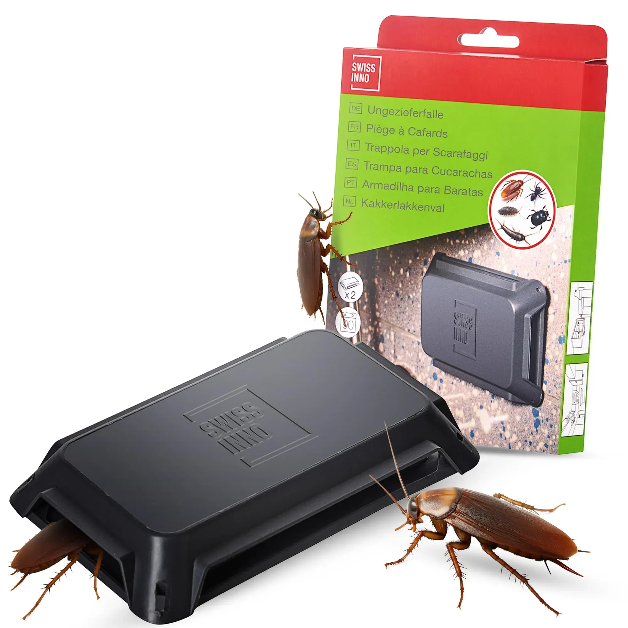 Gewöhnlich versandfertig in 2 bis 3 TagenSWISSINNO Ungezieferfalle inkl. Lebensmittel-Köder für Monitoring - Gegen Schaben, Käfer, Silberfische, Kellerasseln oder Spinnen - 2 Fallen