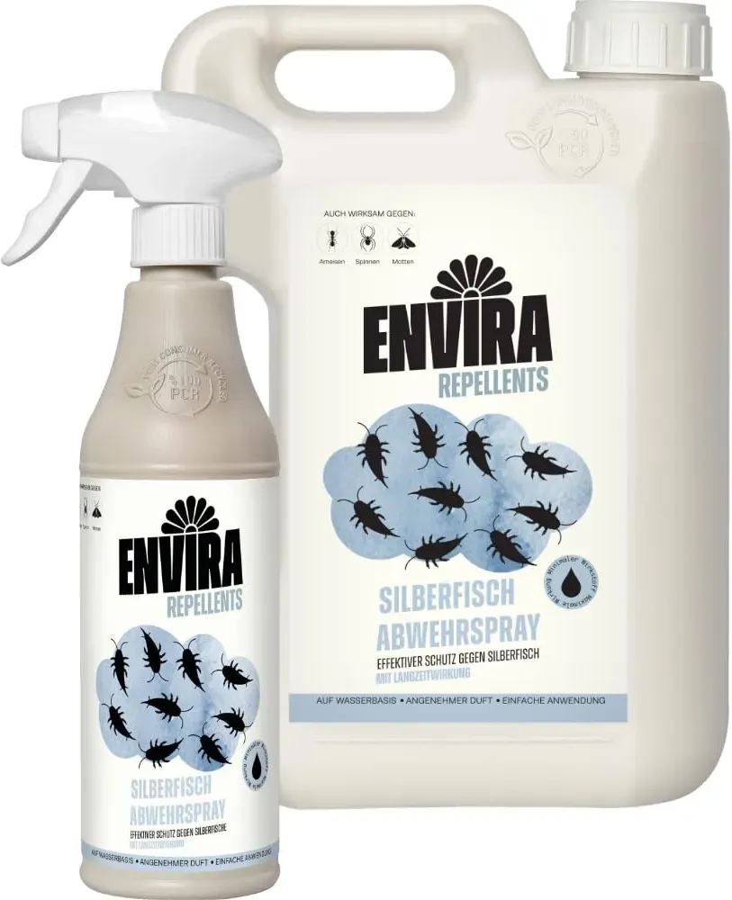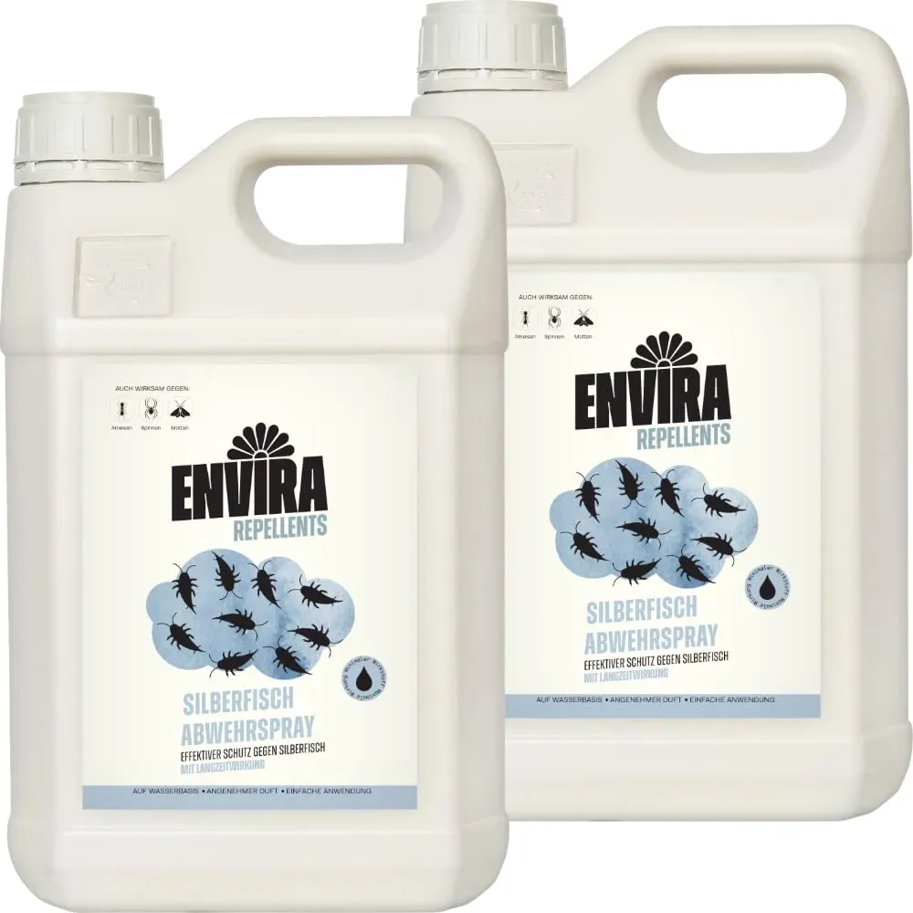 2 Händlerangebote bei billiger.de - Kategorie: Pflegemittel & Schädlingsbekämpfung - ENVIRA - Liefert beste Ergebnisse im Kampf gegen Silberfische. Auf Wasserbasis Sofort sprühfertig Geruchlos Hinterlässt keine Flecken Ohne Alkohol Verhindert Neubefall Nicht ätzend Ohne Treibgase Nicht brennbar Löst Silberfischprobleme im Innen- und Aussenbereich, z.B. für Häuser, Terrassen, Geräteschuppen, Wege, Plätze, Sportboote, Yachthäfen, Bootsstege, Boote, Poolbereiche, Lichtquellen usw. Envira Silberfischspray löst Silberfischprobleme von Grund auf. Es lähmt Silberfische nicht sofort, sondern greift erst das Nervensystem an und tötet diese, das kann ggf. einige Minuten dauern. Bei sachgemäßer Anwendung wehrt Envira Silberfischspray Silberfische über Monate im trockenen Innenbereich ab. Envira ist auch für Tierlager geeignet (nicht direkt auf das Tier sprühen!). Selbst empfindliche Oberflächen wie Leder, Möbel, Teppiche können besprüht werden (vor Anwendung ggf. an unauffälliger Stelle testen). - GTIN:8682102010037 Dieses 2x 5 Liter Envira Silberfisch Abwehrspray bietet eine großflächige und langanhaltende Lösung zur Silberfischbekämpfung. ![]() ![]() Envira Silberfisch Abwehrspray 2 x 5 Liter - Spray mit Langzeitwirkung gegen Silberfische & Papierfische - Mittel gegen Silberfische in der Wohnung - Effektiv Silberfischchen loswerden