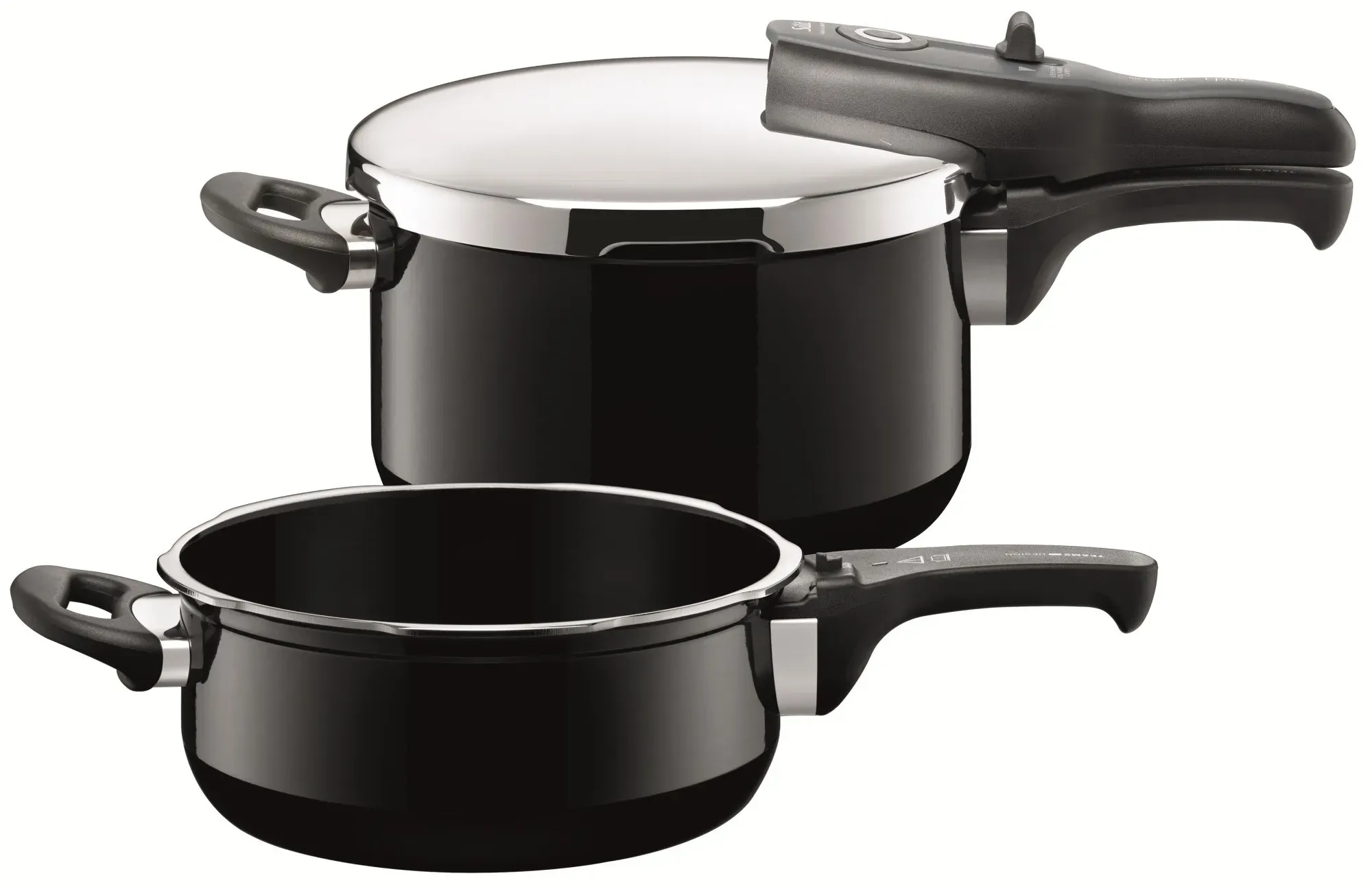 Kategorie: Schnellkochtöpfe - Silit - GTIN:4004633304111 - SILIT Schnellkochtopf Sicomatic -T Plus DUO Set zwei Töpfe ein Deckel 4,5 und 3,0 Liter - 22 cm Durchmesser Material: Silargan Schwarz Die ganze Technik befindet sich im ergonomischen Griff: Vom Schließen über das Einstellen der Kochstufen bis zum sanften Abdampfen. Alle Funktionen können mit einer Hand bedient werden ein Daumendruck genügt. Drei fest einstellbare Kochstufen für schonendes und schnelles Garen auf den Punkt. Benutzerfreundlicher Einhand-Kochstufenregler - perfekter Bedienkomfort. Gut sichtbare Kochstufenanzeige. Wartungsfreies Ganzmetallventil mit integrierter Restdrucksicherung. Hermetic-System - mehr Geschmack, weniger Energie. Ergonomische Griffe Made in Germany incl. Bedienungsanleitung mit Garzeitentabelle in 3 Sprachen: Deu... - 184,95 Euro bei 1a-neuware.de - gefunden von billiger.de Ein großes 8-teiliges Topf-Set, das eine komplette Ausstattung für ambitionierte Köche bietet. ![]() ![]()
