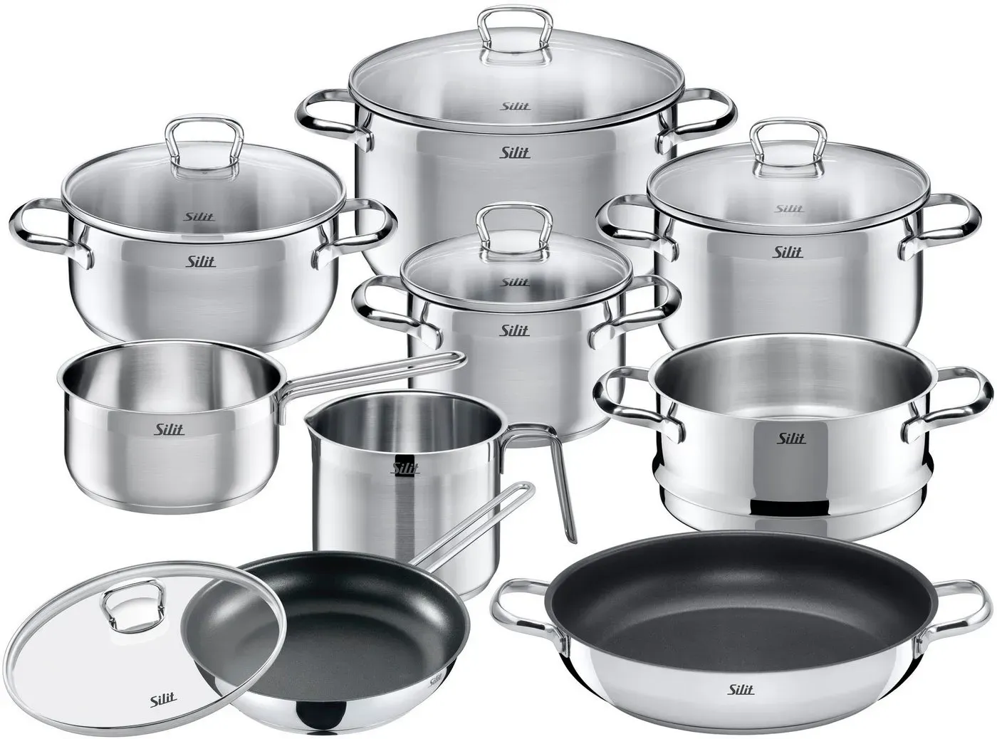 Verfügbarkeit: 1-2 Werktage - Kategorie: Töpfe - Silit - GTIN:4004633285458 - 8 Töpfe in verschiedenen Größen Ø24cm - 14cm 2 Pfannen Ø28cm & 24cm mit ergonomisch geformten Edelstahl-Griffen ausgestellter Schüttrand für problemloses Ausgießen SilitTherm-Allherdboden verteilt die Wärme gleichmäßig breiter Schüttrand für ein tropffreies Ausgießen - 183,49 Euro bei voelkner Marktplatz - gefunden von billiger.de ![]() kaufland.d e Silit Toskana Topfset Induktion 10-teilig, Kochtopf Set mit Glasdeckel, Milchtopf, Dämpfer, Pfanne, Edelstahl teilmattiert, Töpfe Set unbeschichtet