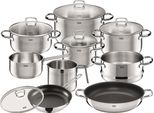 Silit - EAN: 4004633285458 - Inhalt: 1x Bratentopf 20 cm, 3x Fleischtopf 16,20,24 cm - mit Deckel, 1x Stielkasserolle o. Deckel 16cm, 1x Milchtopf 14cm, 1x Dämpfeinsatz 20cm, 1x Servierpfanne 28cm, 1x Pfanne 24cm, 1x Deckel 24cmMaterial: Edelstahl 18/10 poliert, unbeschichtet - rostfrei, spülmaschinengeeignet, backofengeeignet und säurefest. Glas. Hitzebeständig bis 250 C (mit Deckel 180 C)Die Töpfe ohne Skalierung können auf allen gängigen Herdarten verwendet werden: Induktionsherde, Gasherde, Elektroherde, Glaskeramikherde. Dank der optimalen Wärmeverteilung brennt nichts anDie genieteten Griffe des Edelstahltöpfe bieten einen sicheren Halt und werden während dem Kochvorgang nicht heiß. Der Glasdeckel ohne Dampföffnung ermöglicht es den Garvorgang zu beobachtenDie Bodenkonstruktion (SiliTherm) sorgt für eine gleichmäßige und lange Wärmespeicherung. So kann während dem Kochen Energie und Zeit gespart werden Die Induktionskochtöpfe der Serie Toskana von Silit sind ideal zum wasserarmen energiesparenden Kochen. Durch ihre ergonomisch geformte Griffe aus satiniertem Edelstahl und ihr modernes Design passen sie in jede Küche. Die Töpfe sind für alle Herdarten geeignet inklusive Induktion. Darüber hinaus kann man die Silit Töpfe auch in den heißen Backofen geben. Der rundum verkapselter SilitTherm-Allherdboden verteilt die Wärme gleichmäßig und speichert sie lange. Der praktische Deckel aus hitzebeständigen Güteglas ermögliche es, auch bei aufgelegtem Deckel, beim kochen ... ![]()