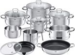 lieferbar-in 2-4 Werktagen bei dirSilit Topf-Set Toskana, Kochtopf Set mit Glasdeckel induktionsgeeignet, teilmattiert, Edelstahl 18/10 (Set, 14-tlg., mit Milchtopf und Dampfgareinsatz), Silitherm-Allherdboden, Induktionskochtöpfe, spülmaschinengeeignet silberfarben